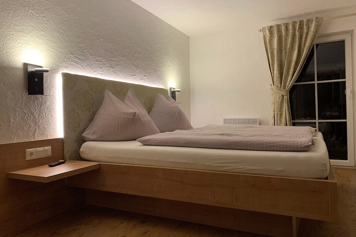 1. Stock: 1 Doppel-, 1 Dreibett-, 1 4Bettzimmer mit Dusche und WC, Balkon und TV, 2021 komplett neu renoviert und eingerichtet mit hochwertigen, massgetischlerten Holzmöbeln