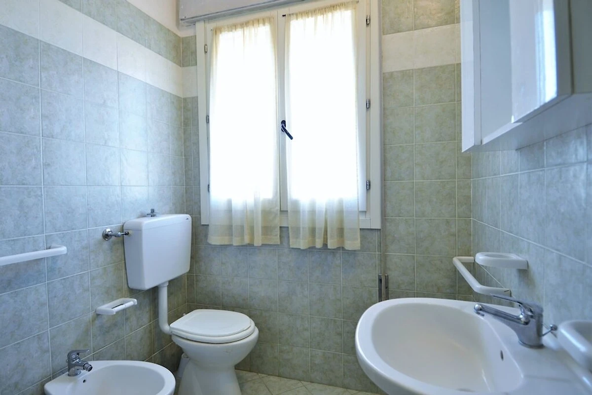 Dieses einladende, haustierfreundliche Apartment im ersten Stock in Rosolina Mare bietet großzügigen Platz und Komfort, nur wenige Schritte von der Adriaküste entfernt. Es eignet sich perfekt für größere Familien oder Gruppen und verfügt über ein gemütliches Wohnzimmer mit Doppelschlafcouch, Fernseher und Esstisch. Die offene Küche ist mit Herd, Backofen, Kühlschrank und Waschbecken bestens ausgestattet. Mit vier Schlafzimmern, jeweils mit Doppel- und Einzelbetten, und zwei Badezimmern mit Dusche, Bidet und Waschbecken ist das Apartment auf Komfort und erholsame Aufenthalte ausgelegt.