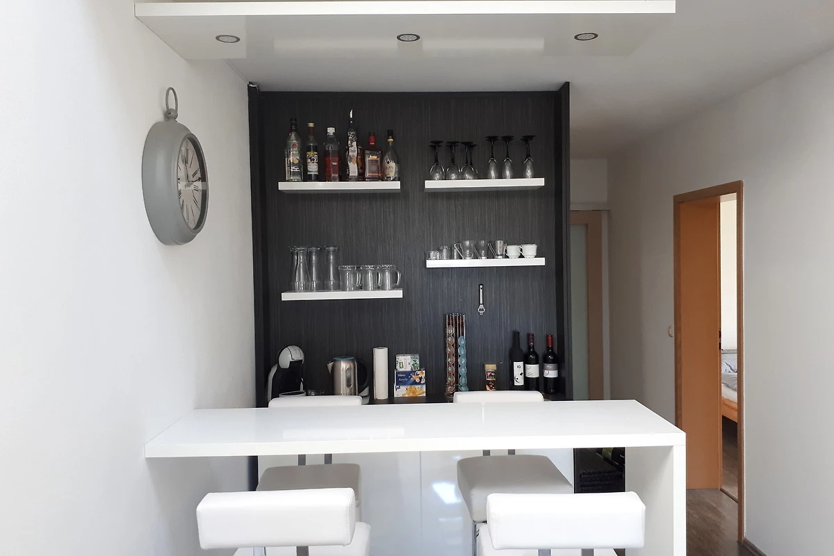 Der Wassersprudler-SodaStream und Filterkaffee für die Kaffeemaschine in der Küche, sowie verschiedene Teesorten an der Bar, stehen Ihnen kostenlos zur Verfügung. Für Spirituosen, Wein an der Bar sowie diverse Kaffeesorten unserer Kaffeekapselmaschine berechnen wir eine Gebühr.