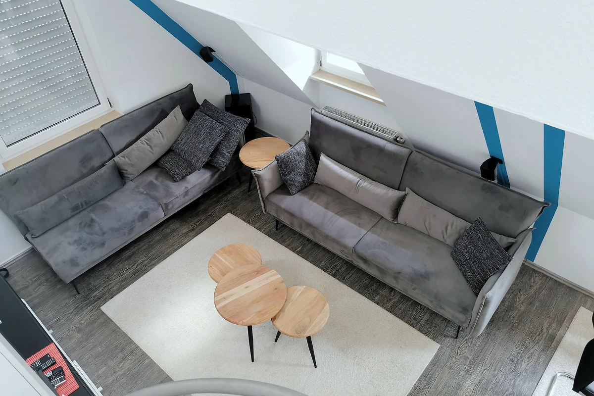 Starten Sie den Abend stilvoll an unserer hauseigenen Bar – der perfekte Ort, um nach einem erlebnisreichen Tag im fränkischen Seenland entspannt zu geniessen und den Urlaub einzuläuten. Geniessen Sie eine Auswahl an Getränken, die für jeden Geschmack etwas bereithält. Kostenlos stehen Ihnen unser Wassersprudler (SodaStream) für erfrischende Sprudelgetränke, Filterkaffee und verschiedene Teesorten zur Verfügung – ideal, um den Tag gemütlich ausklingen zu lassen. Für besondere Genussmomente bieten wir zudem Spirituosen, Wein und verschiedene Kapselkaffeesorten an, die gegen eine kleine Gebühr erhältlich sind. Lehnen Sie sich zurück, plaudern Sie mit Ihren Liebsten oder stossen Sie einfach auf einen unvergesslichen Urlaub an. Die Bar lädt dazu ein, den Abend in gemütlicher, entspannter Atmosphäre zu geniessen – ob bei einem Glas Wein, einem frisch aufgebrühten Kaffee oder einem prickelnden Sprudelgetränk.