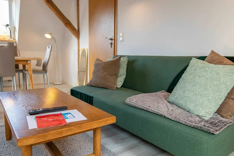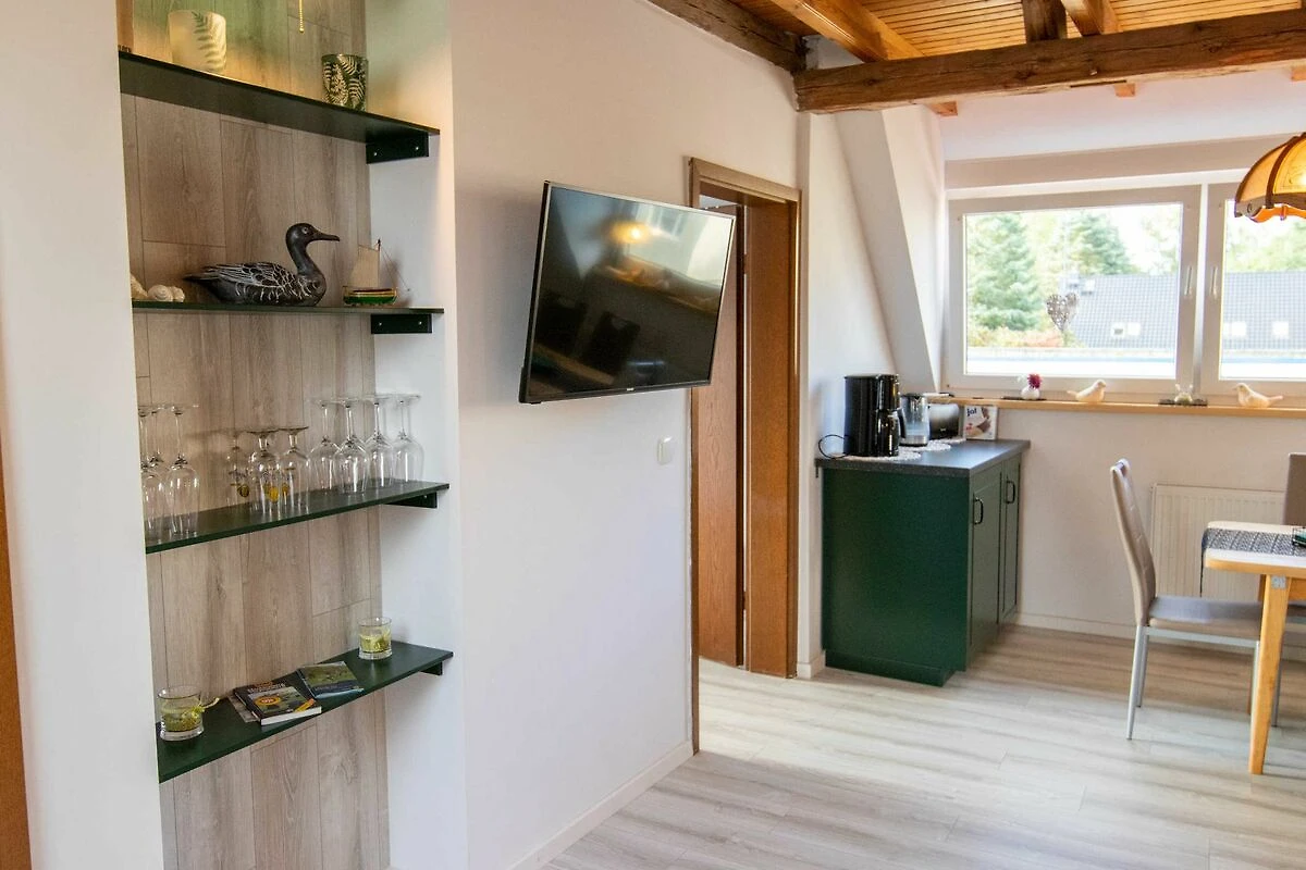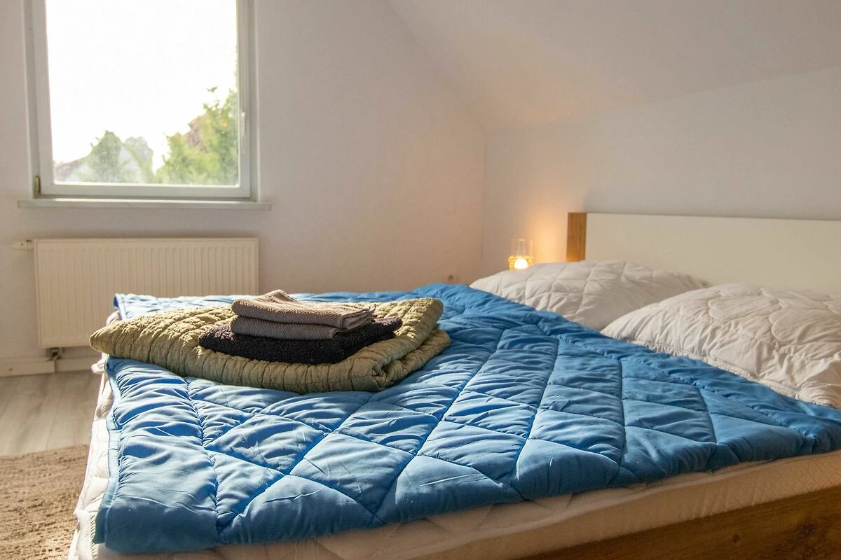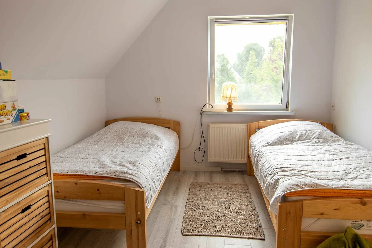 Die Ferienwohnung ist gut für 4 Personen geeignet und befindet sich im Obergeschoss einer Doppelhaushälfte unweit des Kogeler Sees und ist über den gemeinschaftlichen Hauseingang erreichbar.