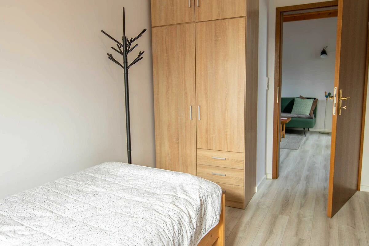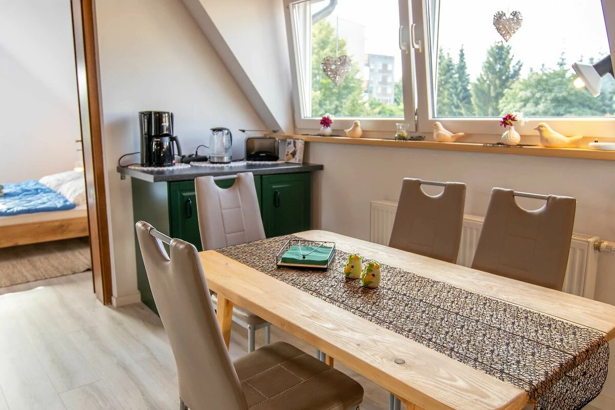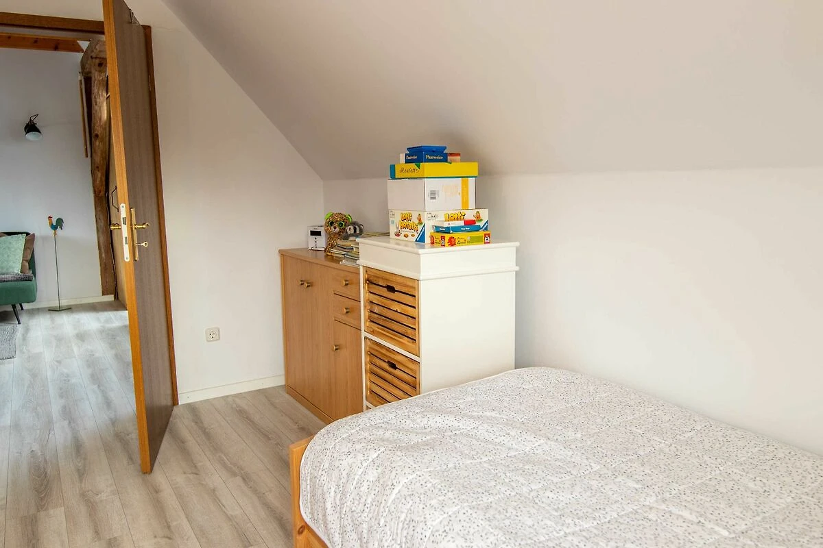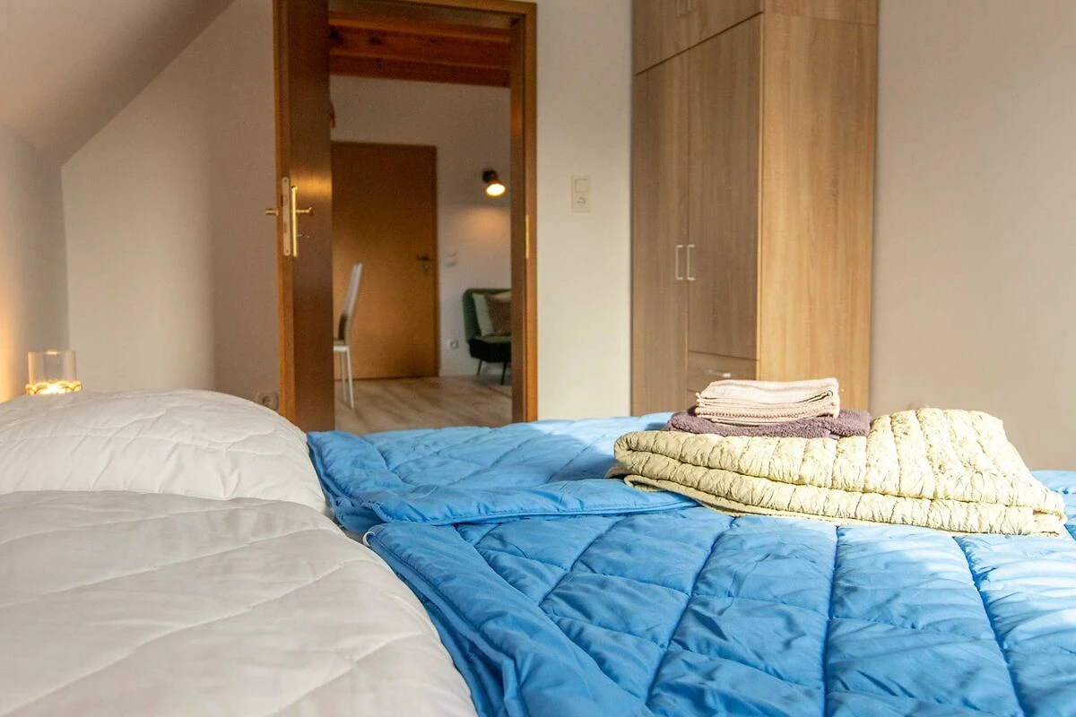 Die Ferienwohnung ist gut für 4 Personen geeignet und befindet sich im Obergeschoss einer Doppelhaushälfte unweit des Kogeler Sees und ist über den gemeinschaftlichen Hauseingang erreichbar.