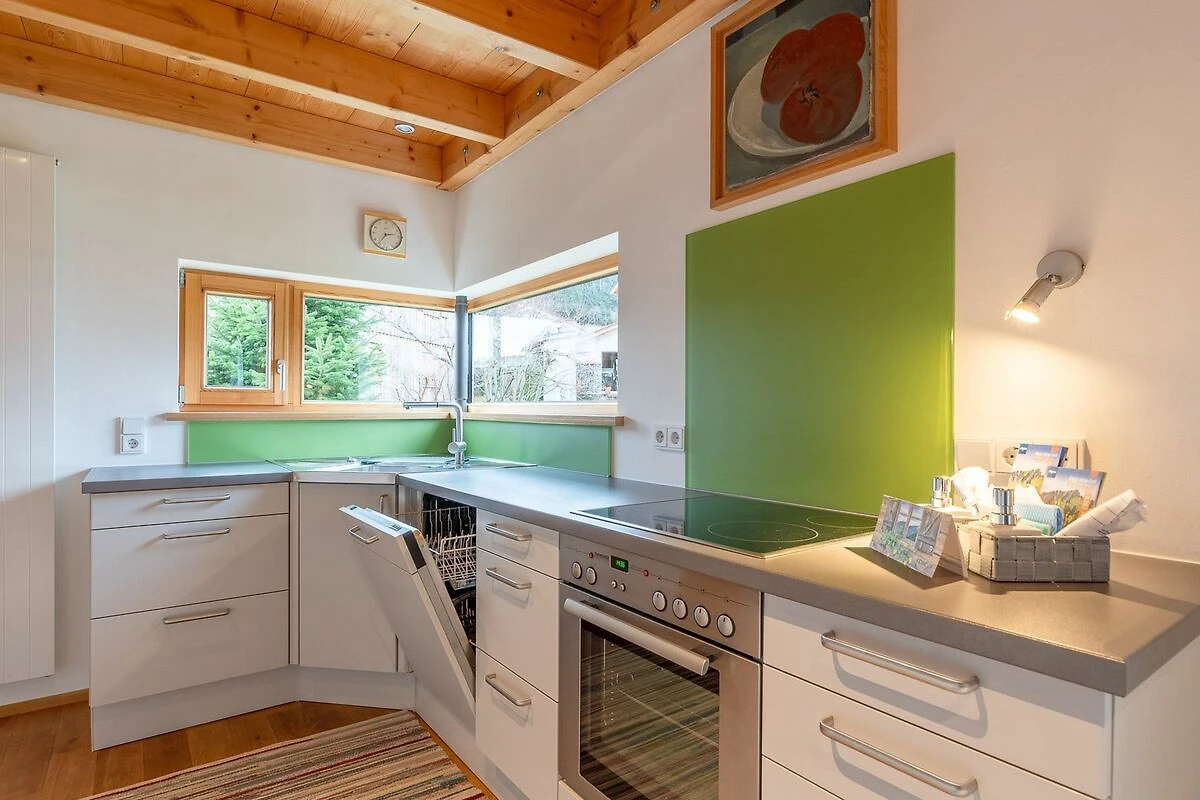 Dieses „QB Ferienhaus“ bietet einen besonderen Comfort und passt sich dem Allgäuer Ambiente ideal an. Das Ferienhaus ist ein aus vorwiegende heimischen Hölzern konstruiert. Die sichtbaren Holzoberflächen sorgen für ein angenehmes Wohnklima. In den Schlafräumen wurde eine Netzfreischaltung bei der Elektroinstallation realisiert, um einen unbelasteten Schlaf zu garantieren. Der Verzicht auf Satelliten-Fernsehen erfolgte daher bewusst. WLAN steht Ihnen selbstverständlich zur Verfügung.[nbsp]