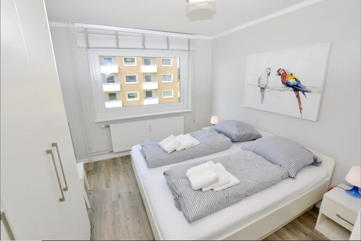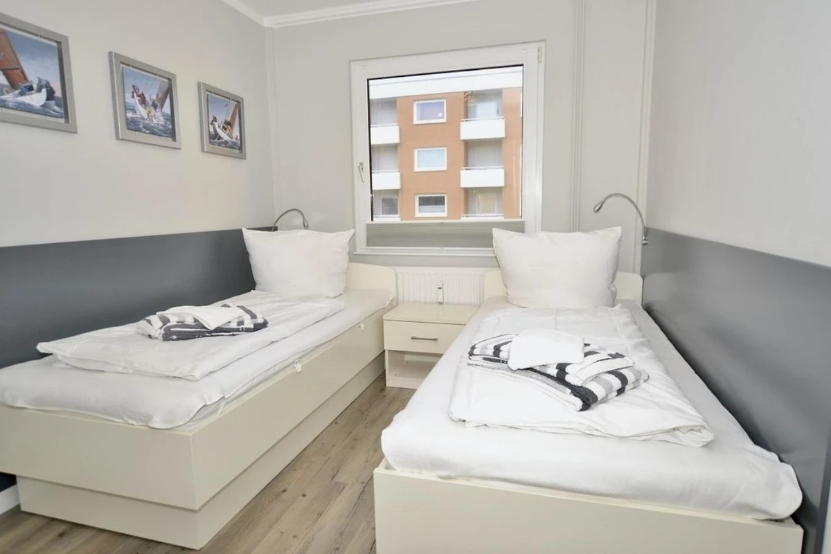 Schlafzimmer: Die Ferienwohnung bietet ein Schlafzimmer mit einem komfortablen Doppelbett (180x200 cm) mit getrennten Matratzen für eine erholsame Nachtruhe. Ein weiteres Schlafzimmer ist mit zwei getrennten Betten (90x200 cm) eingerichtet – ideal für Familien oder Freunde.