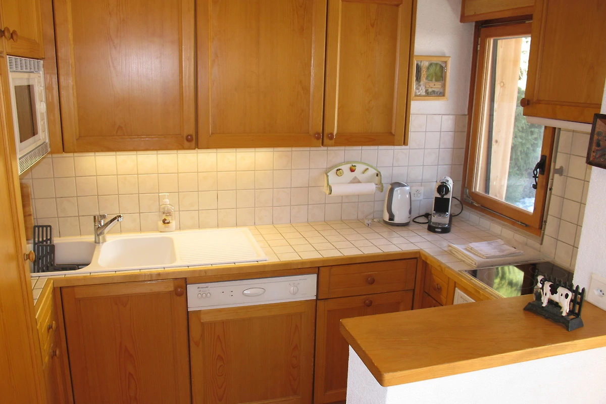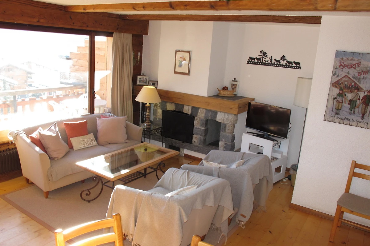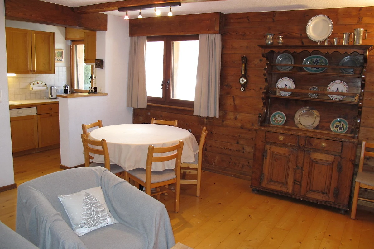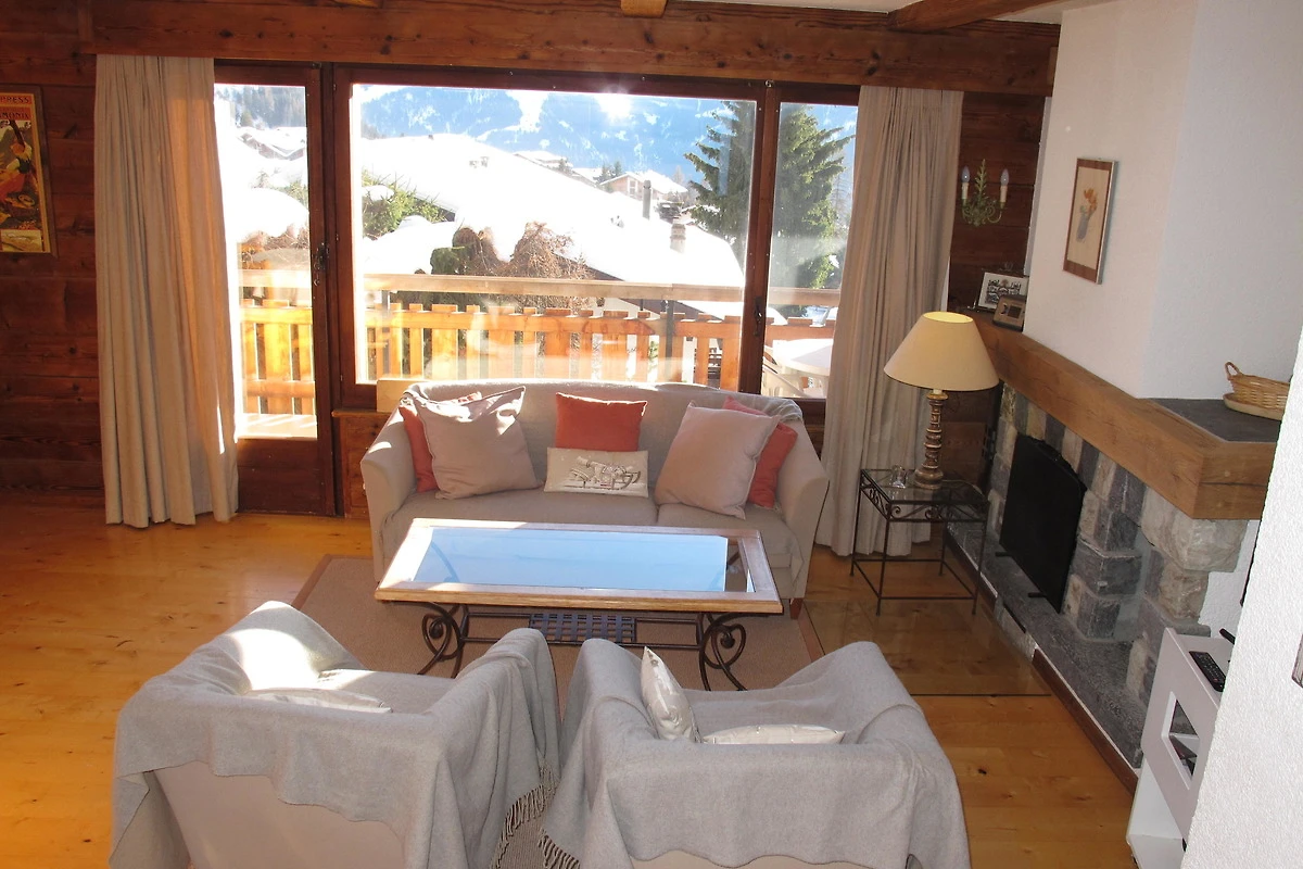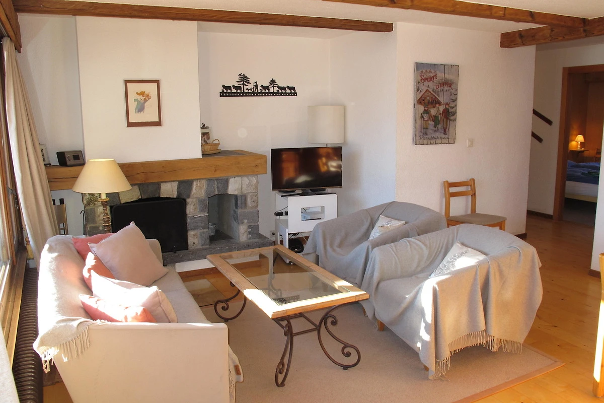 Vom Südbalkon toller Blick hinüber auf das Mont-Blanc-Massiv. Die Wohnung hat Parkettboden im Wohnraum und Teppichböden in den Schlafzimmern. Kabel-TV, DVD, Stereoanlage mit CD-Player und WLAN (frei verfügbar in allen Räumen). Helle, freundliche gemütliche Einrichtung, gute Ausstattung.