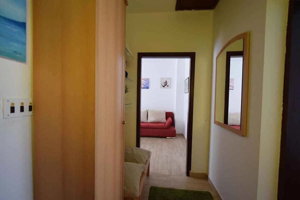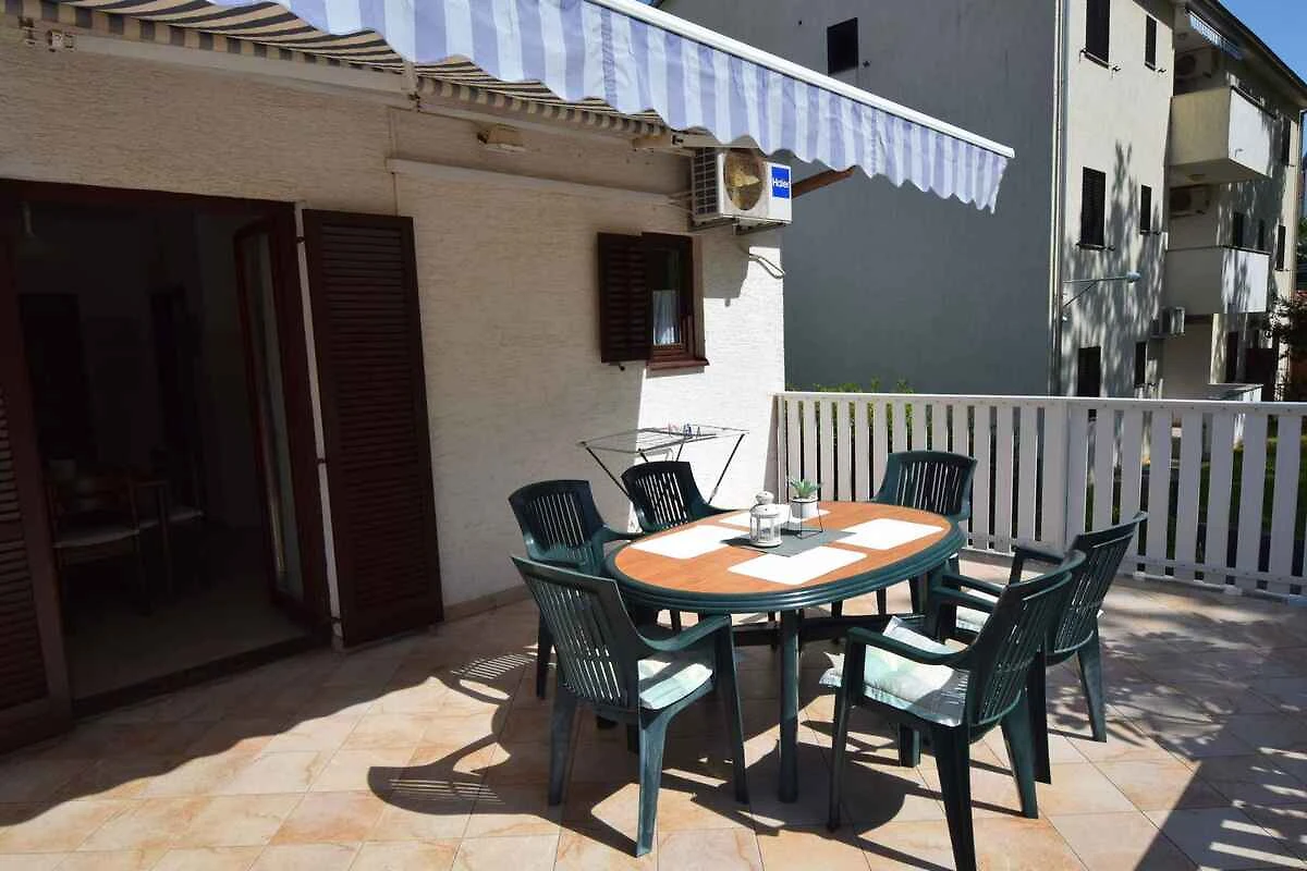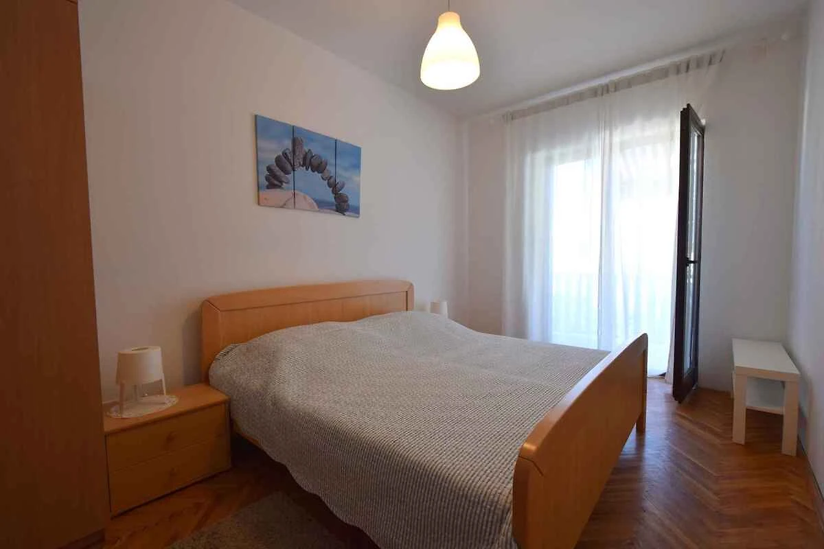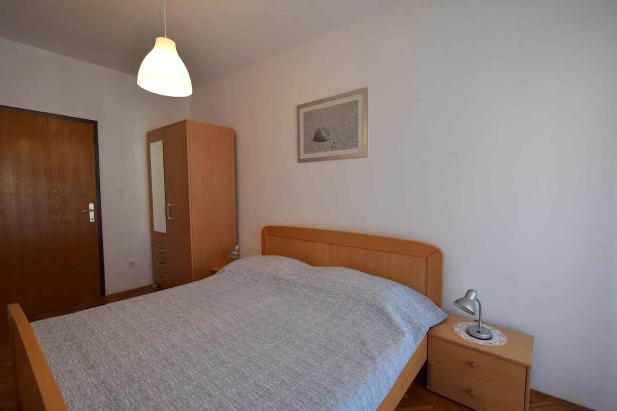 Malinska, Ortsteil Porat. Die Ferienwohnung befindet sich auf einem 300 qm grossen, geschlossenen Grundstück, von einem Zaun begrenzt. Der Vermieter wohnt ständig im Haus, nutzt jedoch einen separaten Eingang. Die Zufahrt erfolgt über eine Nebenstrasse (asphaltiert). Parkplatz (für 1 Pkw) auf dem Grundstück.