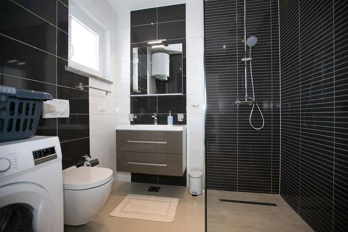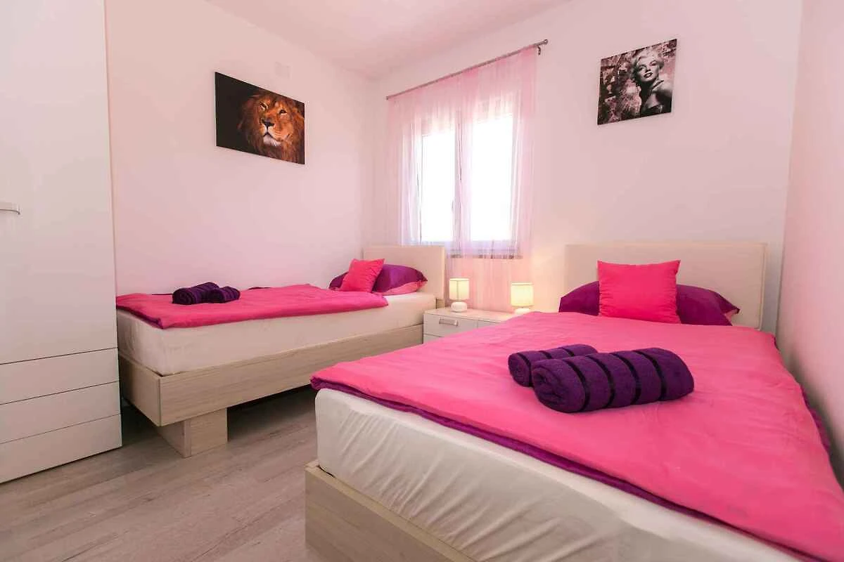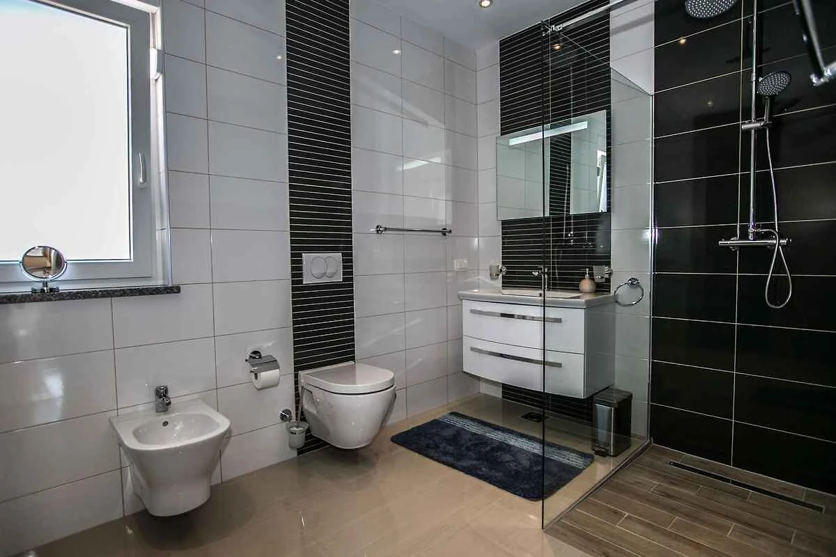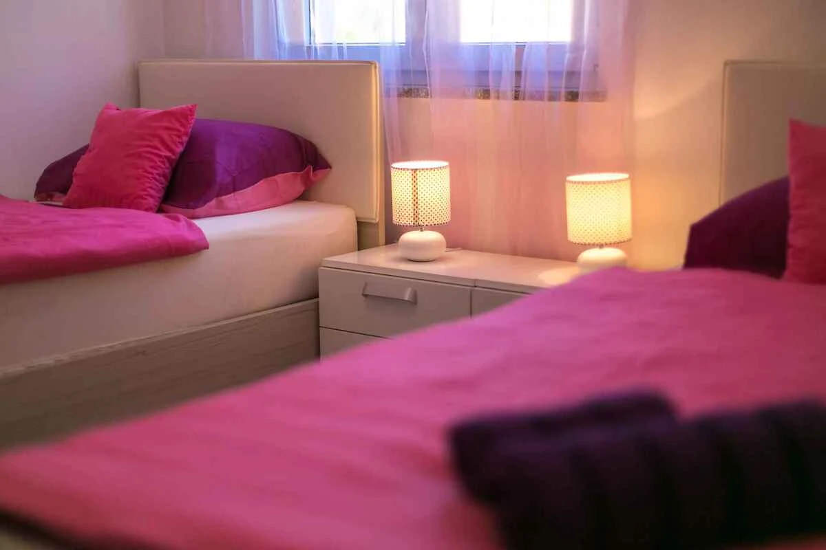 Skrpčići, Ortsteil Skrpčići. Das Ferienhaus befindet sich auf einem 500 qm grossen, geschlossenen Gartengrundstück, von einem Zaun und einer Hecke begrenzt. Der Vermieter wohnt nicht im Haus oder auf dem Grundstück. Hecke oder Draht-/Steinzaun um den Garten. Die Zufahrt erfolgt über eine Nebenstrasse (asphaltiert). Parkplatz auf dem Grundstück und der Strasse vor dem Haus.