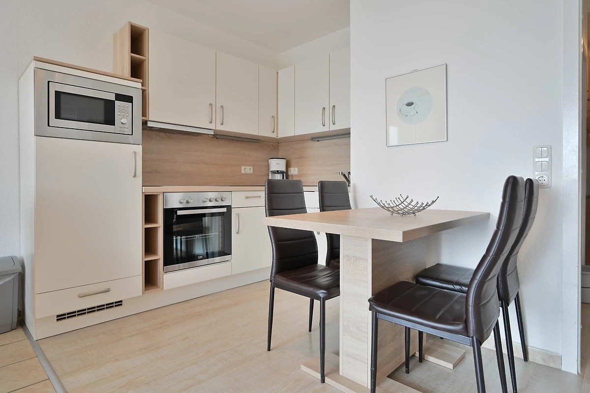 Die optimale Lage direkt hinter dem Deich mit Blick auf die Ostsee und den Strand von Kellenhusen zeichnet diese Ferienwohnung aus. Es erwarten Sie ein Wohn-Schlafzimmer mit einem Schrankwandbett für 2 Personen. Desweiteren verfügt der Raum über eine moderne Couchecke sowie eine Essecke. Die neue Einbauküche ist mit im Wohnbereich integriert. Sie beinhaltet eine Spülmaschine, einen Backofen mit einem 4-Platten Ceranfeld, einer Mikrowelle, Kaffeemaschine, Wasserkocher, Toaster und vielen weiteren Extras.