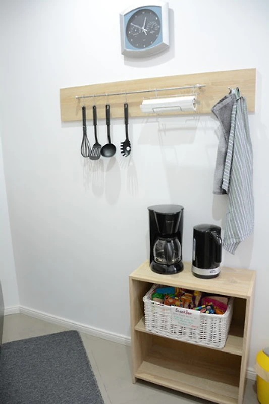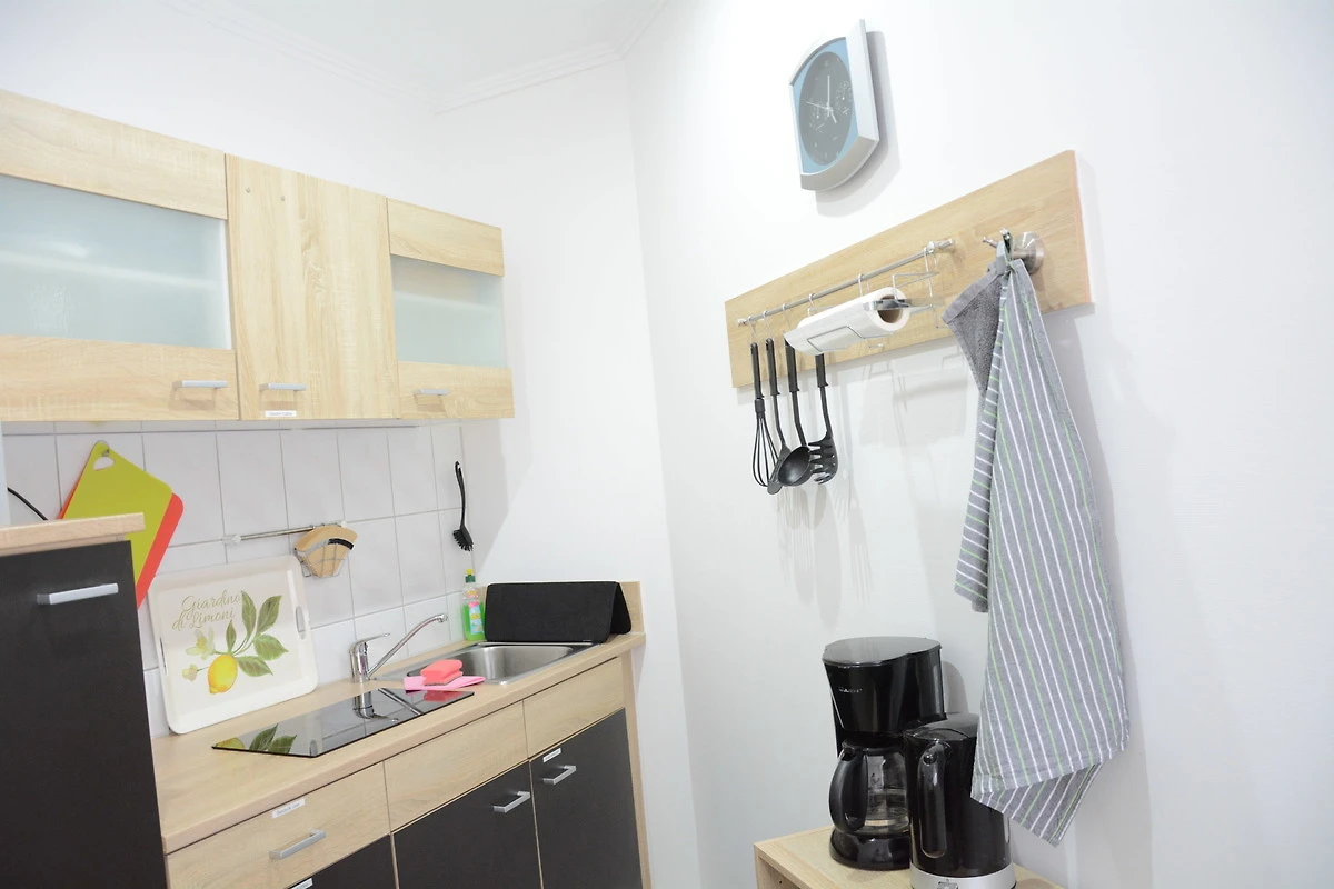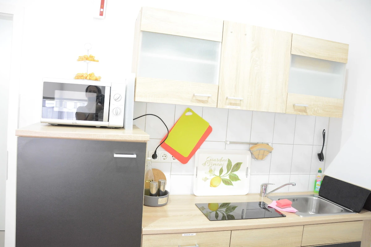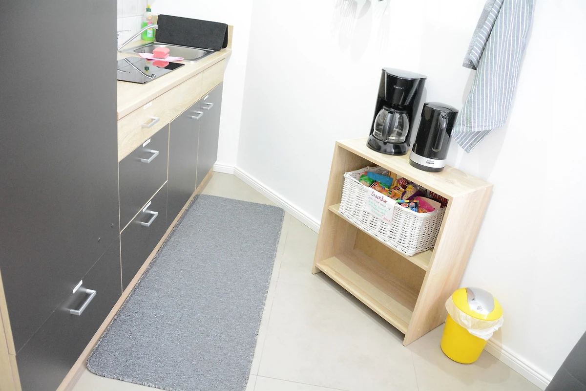 *Frühstückscenter (Mikrowelle, Kaffeemaschine, Wasserkocher und Toaster, Ceranfeld 2 Platten ohne Backofen) ausreichend Geschirr