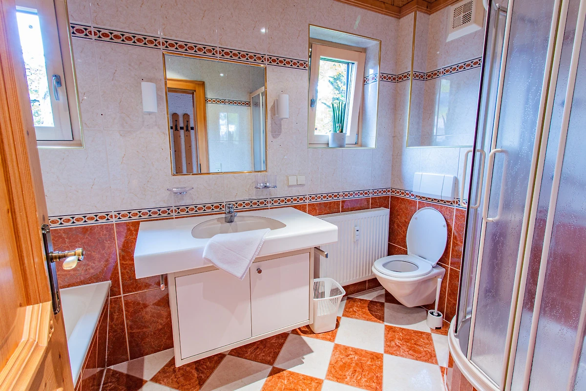 The apartment is located in a prime location with a view of the Dachstein or the ski jump in Ramsau, just a few meters from the center.