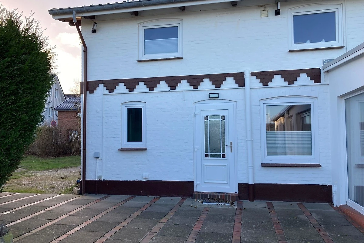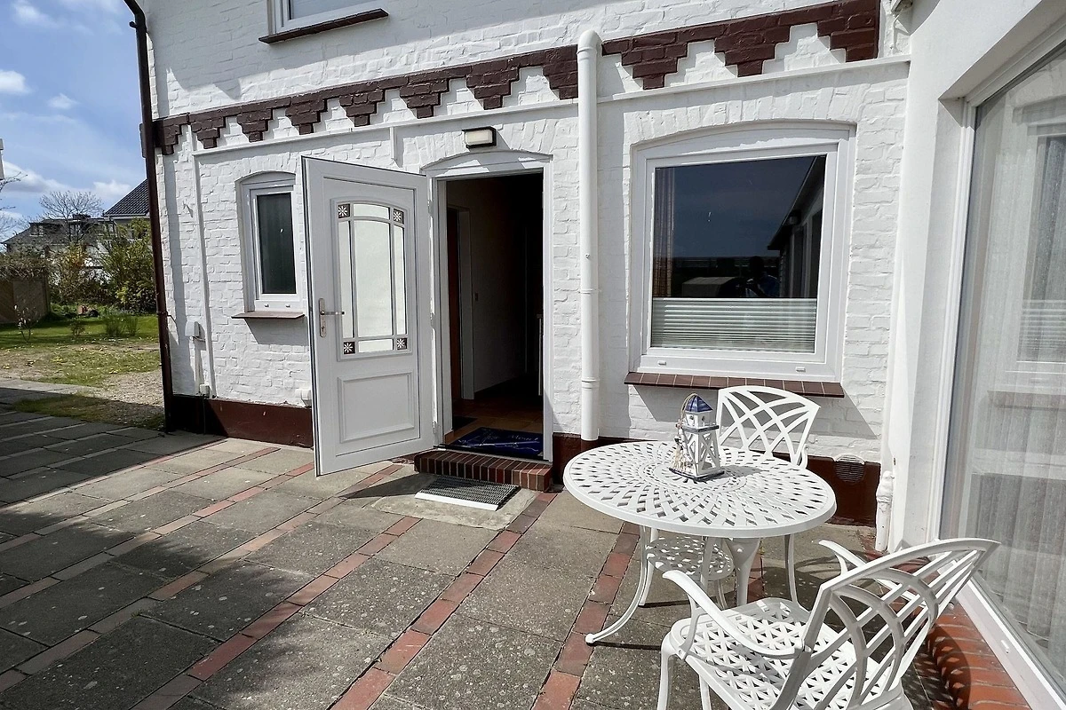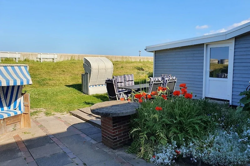 Ein grosszügiger Terrassenbereich mit Strandkorb und der sich anschliessende Garten sorgen für viel Platz im Freien. Hier können Sie in unmittelbarer Nähe zum Deich die frische Seeluft in vollen Zügen geniessen.