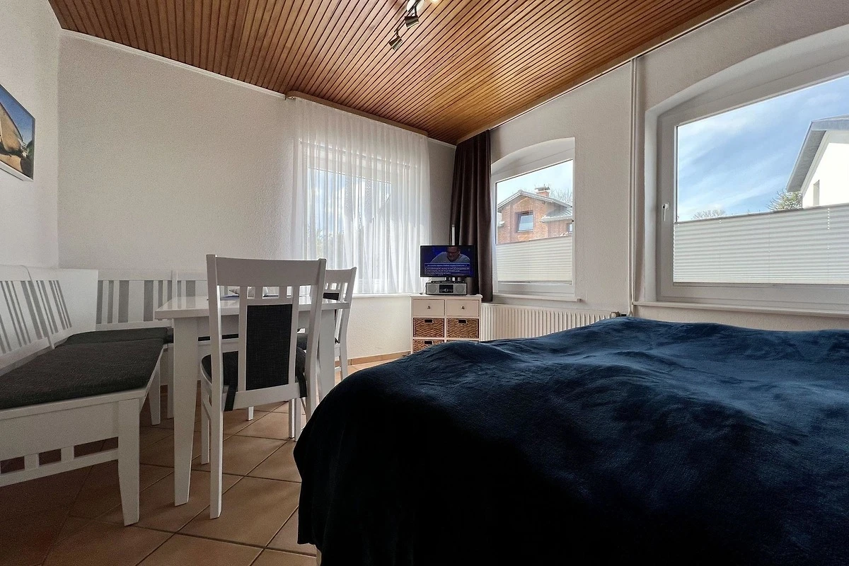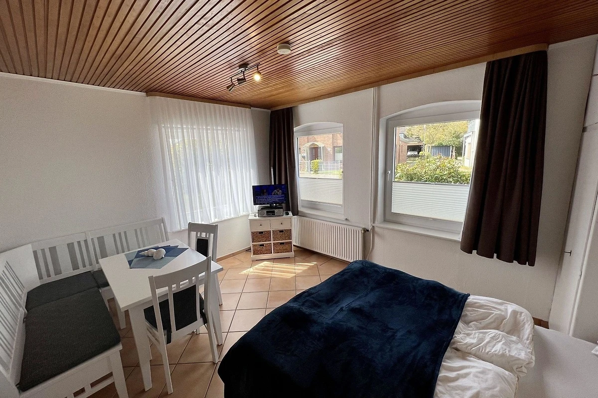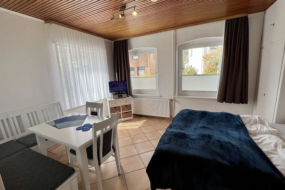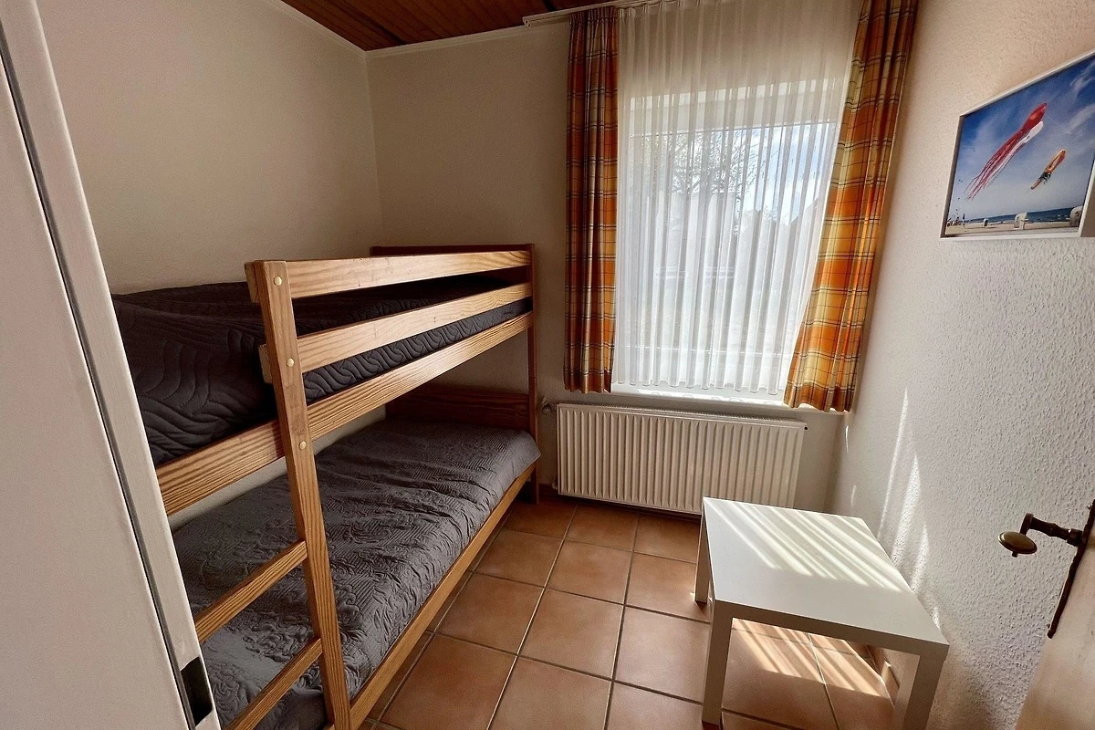 Es erwartet Sie 1 Wohnschlafzimmer mit Doppelbett (140 cm x 200 cm), Digital-SAT-TV LED-HD-Fernseher mit HDMI- und USB-Anschluss, DVD-Player, Radio/CD/USB und das Alles direkt hinterm Deich. Die Küchenzeile ist ausgestattet mit Ceranfeld, Elektroherd mit Heissluftbackofen, Toaster, Mixer, Kaffeemaschine und Wasserkocher. Das Schlafzimmer hat ein stabiles Etagenbett (90cm x 190 cm).