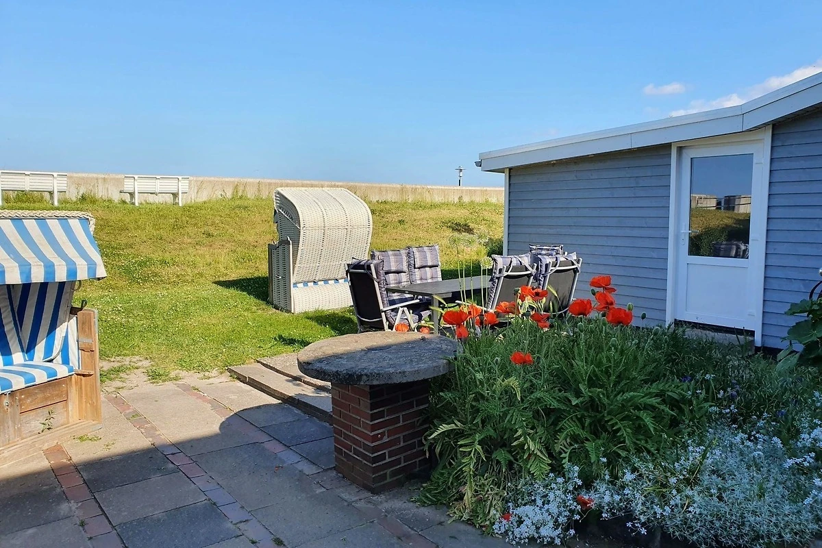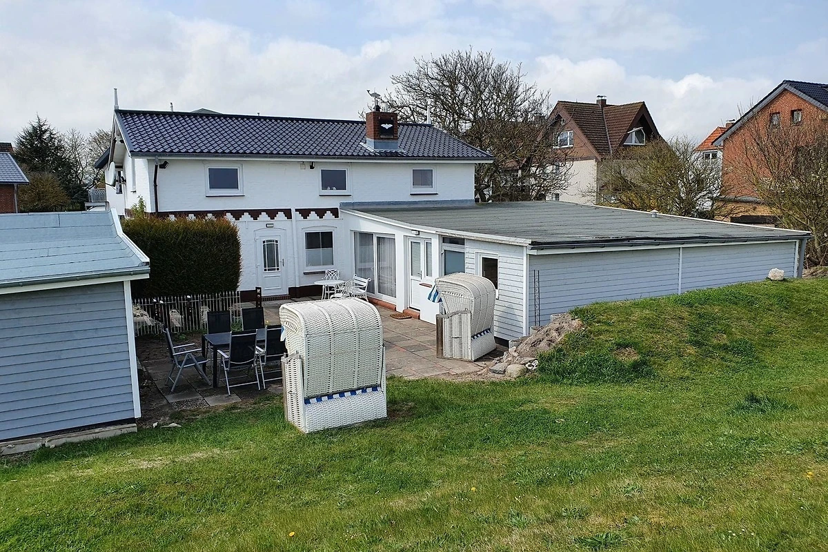 Im Aussenbereich des Hauses erwartet Sie ein grosszügiger Terrassenbereich mit verschiedenen Sitzgelegenheiten sowie eigenem Strandkorb. Auch der Garten bietet die Möglichkeit die frische Seeluft im Freien geniessen zu können.