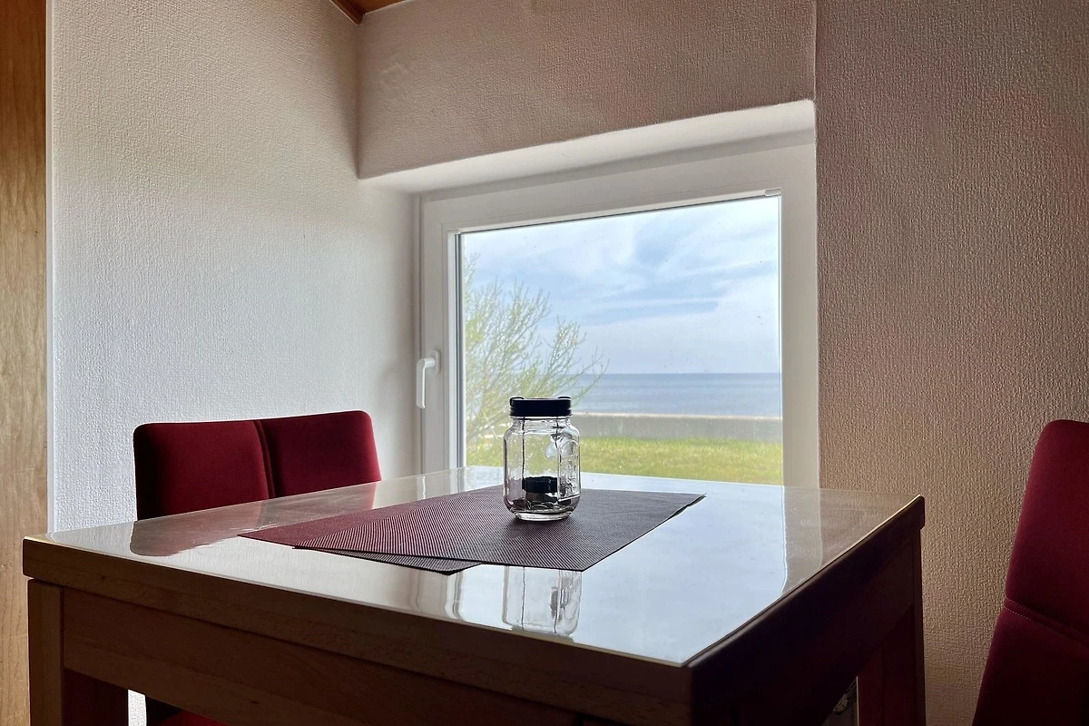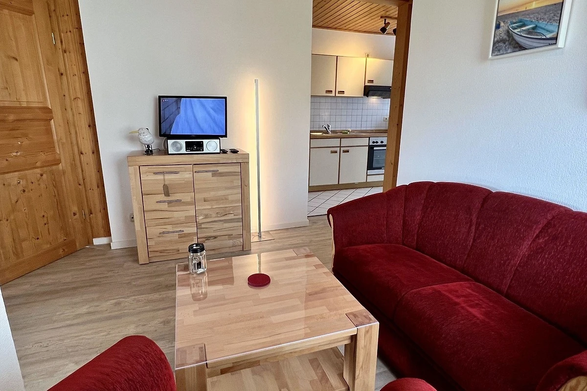 Die "Herzmuschel" für zwei Personen ist unterteilt in Wohnzimmer, Schlafzimmer, Küche und Bad. Nach Norden und Osten geniessen Sie den Blick auf die Ostsee, und können den Sonnenaufgang zum Frühstück geniessen. Die Küche verfügt über einen Kühlschrank mit Eisfach, Ceranfeld mit vier Kochfeldern sowie Backofen, Toaster, Mixer, Kaffeemaschine und Wasserkocher. Im Schlafraum erwartet Sie ein Doppelbett mit zwei Matratzen á 90 cm x 200 cm. Der Wohnraum ist ausgestattet mit einer kleinen Sofaecke, Digital-SAT-TV LCD-Fernseher mit HD- und USB-Anschluss sowie Radio/CD/USB.