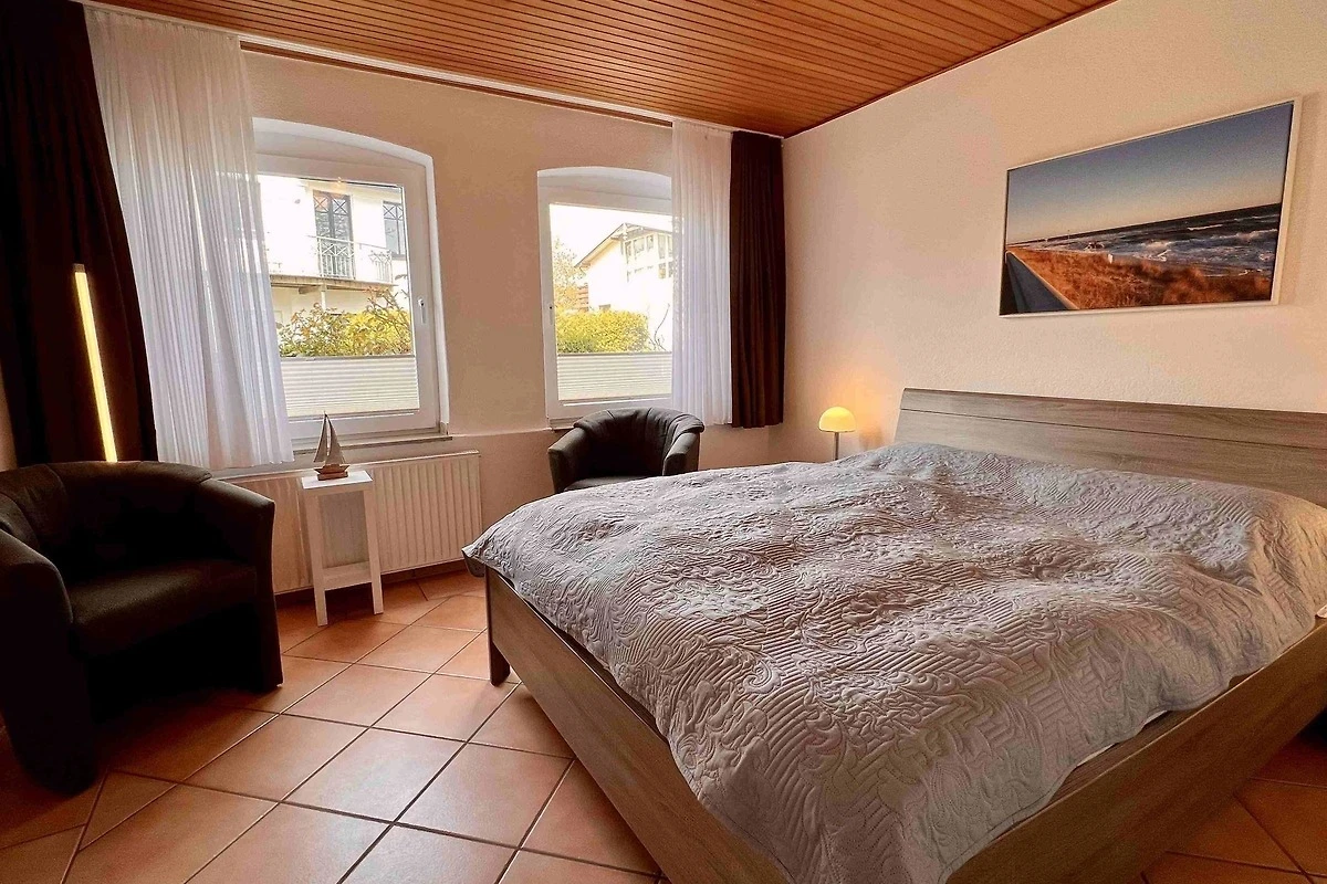 Im Wohn- Schlafzimmer steht ein Doppelbett (zwei Matratzen je 80x200) sowie Sessel. Fernsehen empfangen Sie über Digital-SAT-TV LCD mit HD- und USB-Anschluss, Radio/CD/USB ist ebenfalls vorhanden.