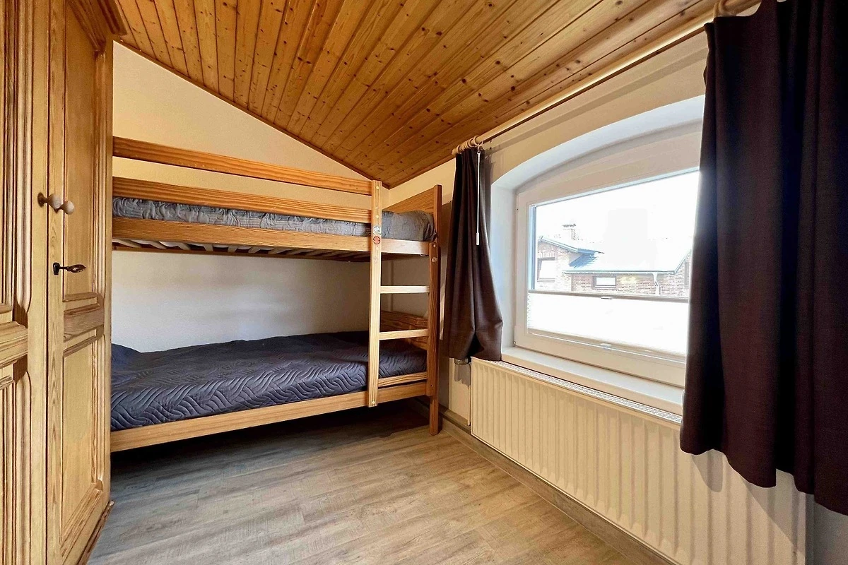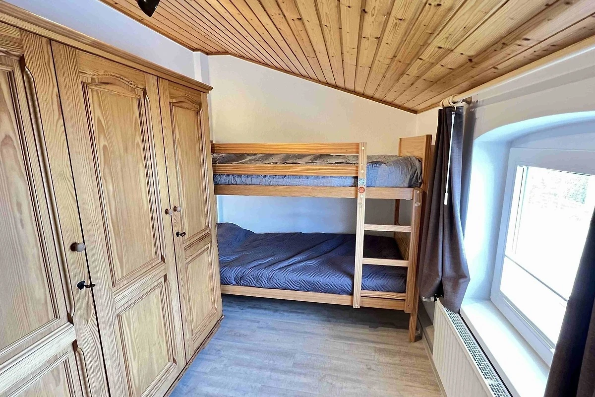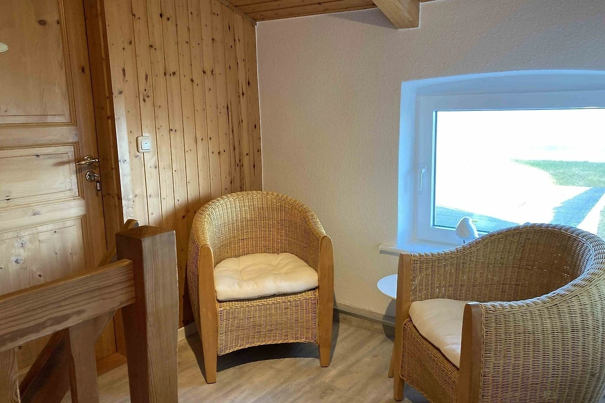 Sie schlafen in einem Doppelbett (zwei Matratzen, 80 x 200) und erwachen - wenn Sie mögen - mit dem Blick auf die Ostsee.
