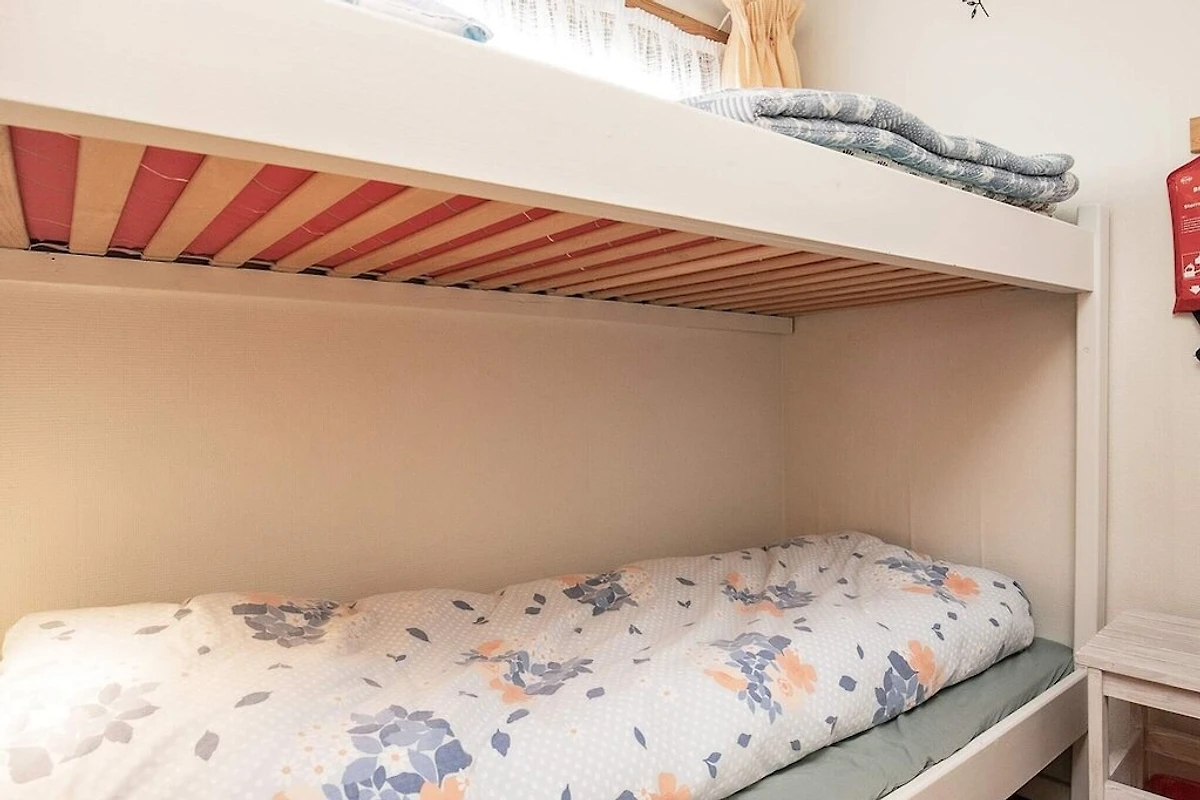 Küche(Kochherd(elektrisch), Kaffeemaschine, Kühlschrank(+ Gefrierfach)), Wohn-/Schlafzimmer(TV), Schlafzimmer(2x Einzelbett), Schlafzimmer(2x Etagenbett), Badezimmer(Waschbecken, Dusche, Toilette), Garage, Heizung(elektrisch), Terrasse, Garten
