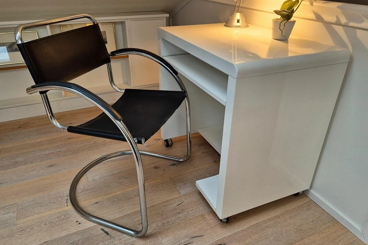 Das geräumige Schlafzimmer mit Blick in den Himmel ist einzigartig und mit einem zusätzlichen Sofa sehr gemütlich eingerichtet. Im Untergeschoss (1. Stock) befindet sich ein grosses lichtdurchflutetes Wohn-/Esszimmer mit gemütlicher Sitzecke und Ruhezonen mit Wohlfühl-Oasen. Die grosszügige Küche lädt zum Kochen und Verweilen ein. Das Badezimmer ist mit einer Glasdusche und modernem Design ausgestattet. Der schöne geräumige Balkon mit Blick in die Marsch lädt zum Verweilen ein.