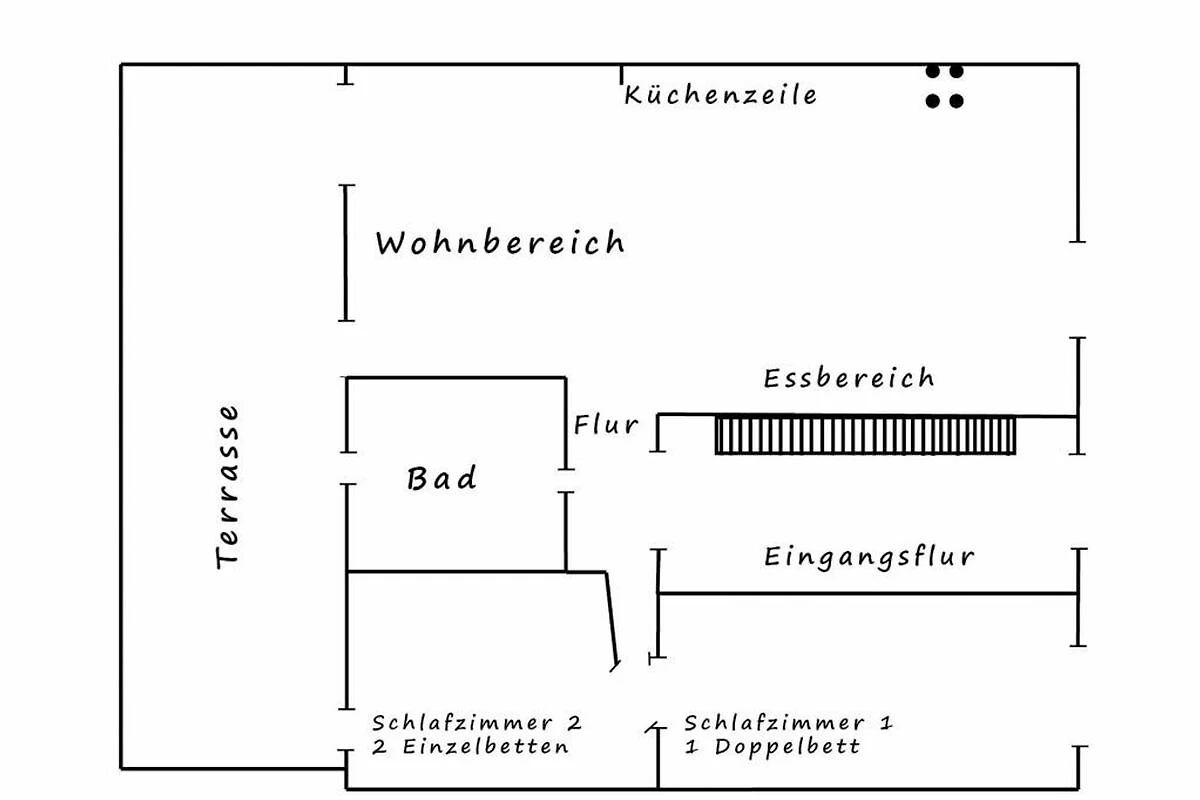 Das Alte Zollhaus liegt nur 500 Meter zur Ostsee mit dem langen Natur Sandstrand und dem Blick über die Lübecker Bucht. Für Ruhesuchende Feriengäste ist die modernisierte Ferienwohnung Altes Zollhaus 1 sehr zu empfehlen. Es empfängt Sie eine grosszügige 3 Zimmer Wohneinheit mit einer Wohnfläche von 68qm. Die im Erdgeschoss liegende Wohnung bietet zudem eine Terrasse. Im Wohnbereich mit dem grossen Sofa, Fernseher, Musikanlage und der zugehörigen voll ausgestatteten Wohnküche findet jeder Gast seinen Lieblingsplatz. Wenn Sie gerne selbst kochen mögen, so stehen Ceranfeldherd, Backofen, Mikrowelle wie ausreichend Kochtöpfe und Geschirr zur Verfügung und auch eine Geschirrspülmaschine ist vorhanden. Kostenfrei kann auch die Waschmaschine benutzt werden. Entspannte Nächte verbringen Sie in zwei separaten Schlafzimmern. Das geräumige Duschbad mit Waschbecken und WC, lässt sich durch ein Fenster gut belüften. Für Familien mit Kindern stehen ein Kinderhochstuhl und auch ein Kinderreisebett in der Wohnung bereit. Ihren PKW können Sie gebührenfrei auf dem für Sie reservierten Aussenstellplatz abstellen. Bitte beachten Sie, dass es sich um ein Feriendomizil handelt, in dem nicht geraucht werden darf. Kleine Hunde sind gegen Gebühr gestattet. Die Buchung ist mit maximal 4 Personen möglich.