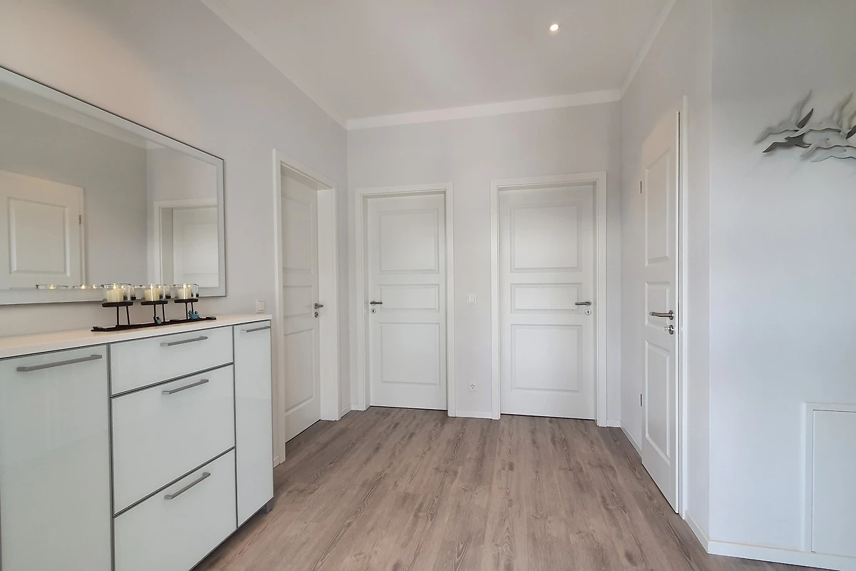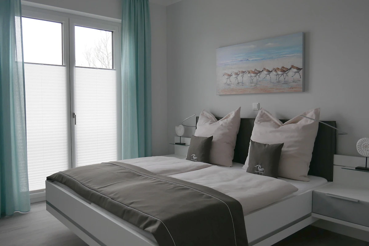 Die sonnige Lage mit Blick auf die Dahmer Au lädt zum Verweilen und Relaxen ein. Die beiden Schlafzimmer verfügen über 2 Doppelbetten (180x200cm) mit Nachtkommoden und Leselampen, modernen Kleiderschränken und elektrischen Rollläden - für optimalen Schlafkomfort. Ein grosszügiges Duschbad mit Regendusche, Föhn und vielen Ablageflächen / Haken und ein Abstellraum mit einem Waschtrockner vervollständigen diese Komfortwohnung. Ein wohnungseigener PKW-Platz mit eigener E-Auto-Ladesäule (kostenpflichtig) und Zutritt zum Fahrrad-/Abfallraum befinden sich direkt am Haus. Bettwäsche und Handtücher können beim Vermittlungsbüro für den Aufenthalt angemietet werden. In nur 2 Gehminuten erreicht man einen der schönsten Strandabschnitte vom Ostseebad Dahme. Für einen bequemen und sorglosen Urlaub steht während der Strandkorbsaison natürlich ein Strandkorb für Sie am Strand bereit.