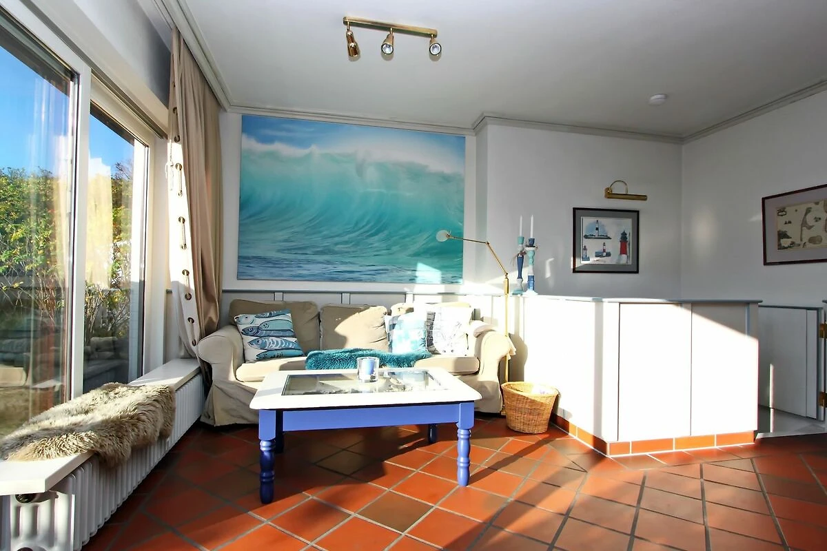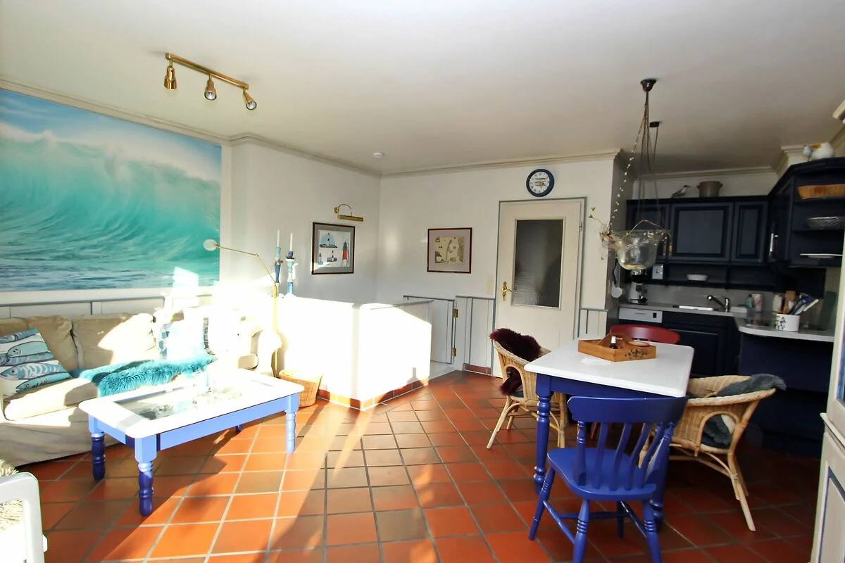 modernes und ganz ruhig gelegenes 3 Zi.-Appartement in Herzen von Hörnum. Das Objekt bietet auf seinen ca. 55qm Platz für bis zu vier Personen. Aufgeteilt ist das Appartement über zwei Ebenen EG/UG. Im Erdgeschoss befindet sich ein grosses, lichtdurchflutetes Wohnzimmer mit offener Einbauküche, Esstisch, Couch, Couchtisch, Vitrinenschrank sowie dem Zugang zur Westterrasse. Dort befindet sich ein Strandkorb und Terrassenmöbel, um geschützt die Sonne geniessen zu können.