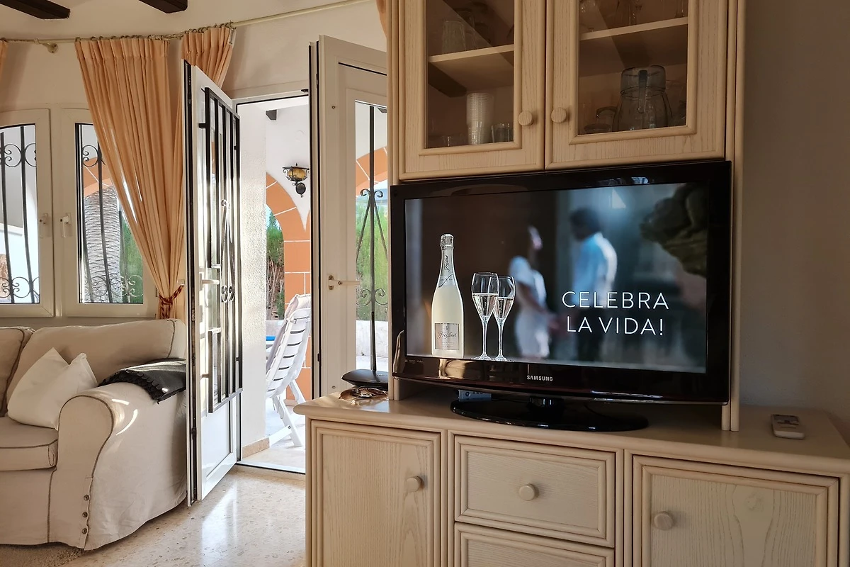 Unser Haus hat eine Wohnfläche von 90 qm, verfügt über 2 Schlafzimmer mit 4 Matratzen unterschiedlichen Härtegrads und ist mit einem schönen Bad mit Dusche für eine Nutzung bis 4 Personen bestens geeignet. Eine mediterrane Küche mit großem Kühlschrank/Eisfach, Cerankochfeld, Backofen, Filter-Kaffeemaschine, Senseo-Pad-Automat, Nespresso Maschine, Wasserkocher, Toaster, Orangensaftautomat und weiteren Kochutensilien erfreut entspannte Hobbyköche, eine kleine Spülmaschine und extra Waschmaschine stehen ebenfalls zur Verfügung. Das Esszimmer und der Wohnbereich sind spanisch eingerichtet und ein kleiner, separater Wintergarten mit deutschen Büchern lädt zum Schmökern ein. Zwei separate Klimaanlagen, einmal im hinteren Schlafbereich und einmal im vorderen Wohnbereich, sorgen für einen angenehmen Aufenthalt in den heißen Sommermonaten, eine Heizungsanlage wärmt bei Bedarf in der kühleren Jahreszeit. Die Casa Julia ist freistehend, das 800 qm Grundstück ist eingezäunt und hohe Hecken schützen in Teilen vor neugierigen Blicken, ein Nachbarhaus hat direkte Sicht auf das Grundstück und auf den Pool. Der Garten ist schön angelegt und die zahlreichen Palmen auf dem Grundstück bieten eine tolle Atmosphäre zum Entspannen unter den zahlreichen Palmenwedeln oder am blau gefliesten, oval runden Pool (ca. 26 qm sowie Außendusche ). Eine großzügige, überdachte Rundbogenterrasse mit Steingrill lädt ganzjährig zum Barbecue und auch in den Wintermonaten zum Sonnenbaden ein.