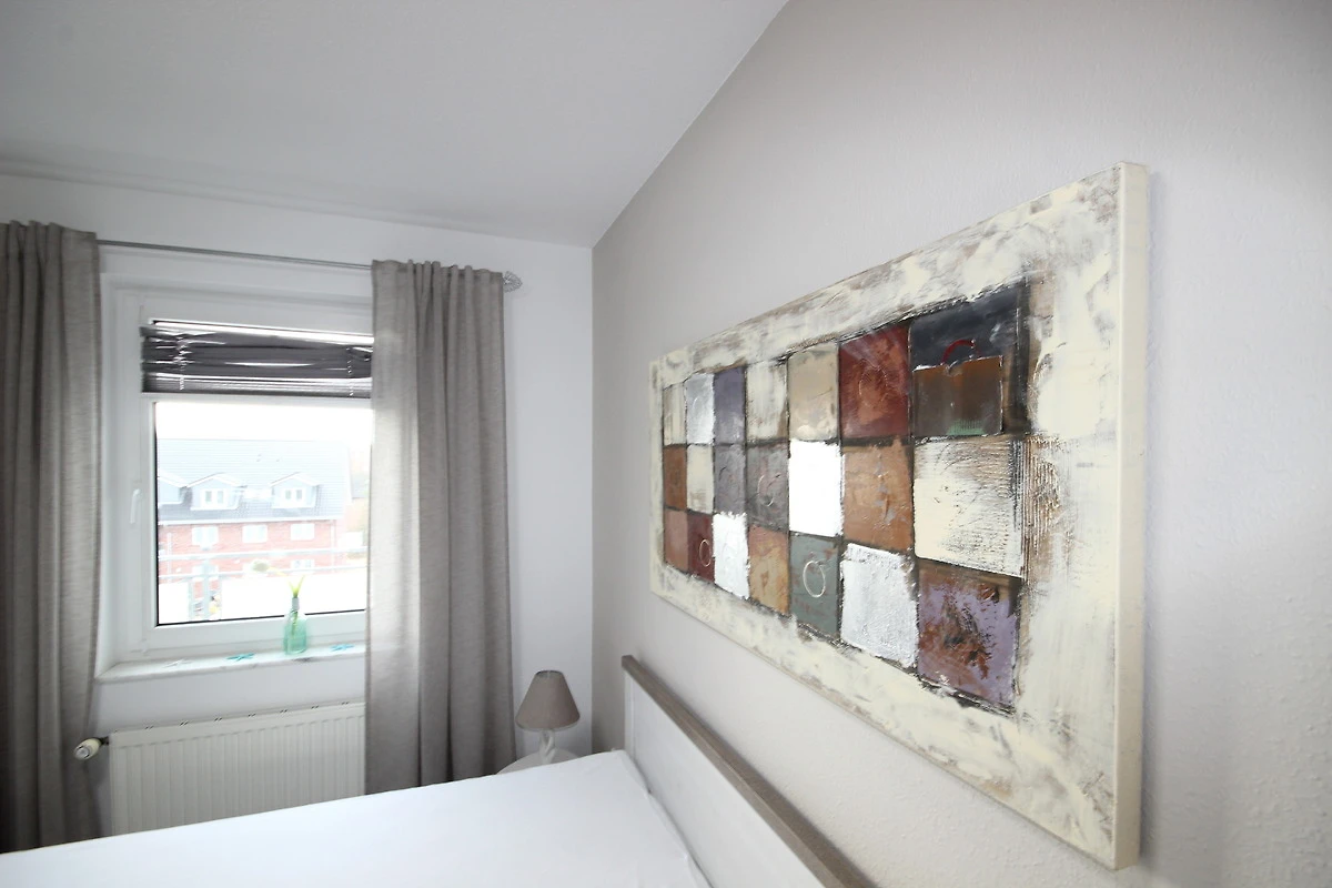 Das neue, freundliche Schlafzimmer verfügt über ein bequemes Doppelbett und Kleiderschrank.