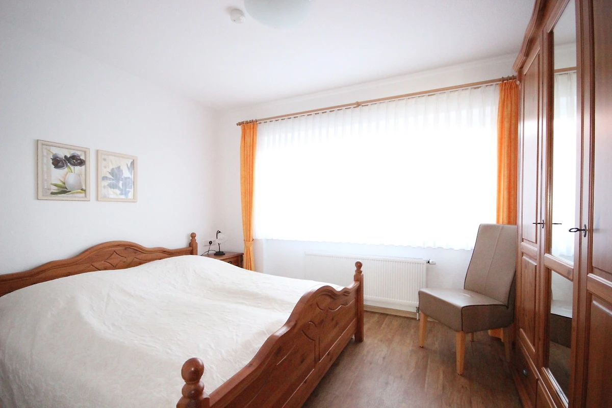 Das 2. Schlafzimmer ist möbliert mit Doppelbett & Kleiderschrank.