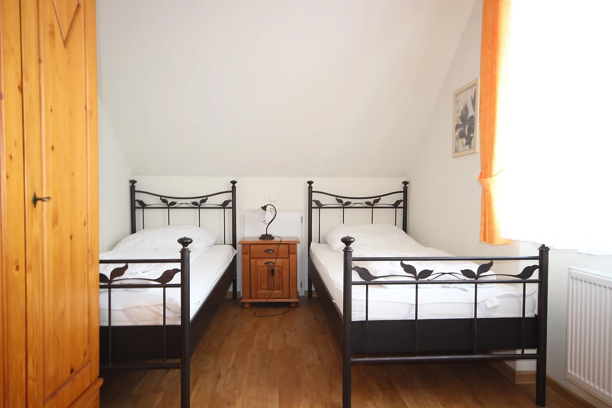 Das 2. Schlafzimmer ist möbliert mit 2 Einzelbetten & Kleiderschrank.