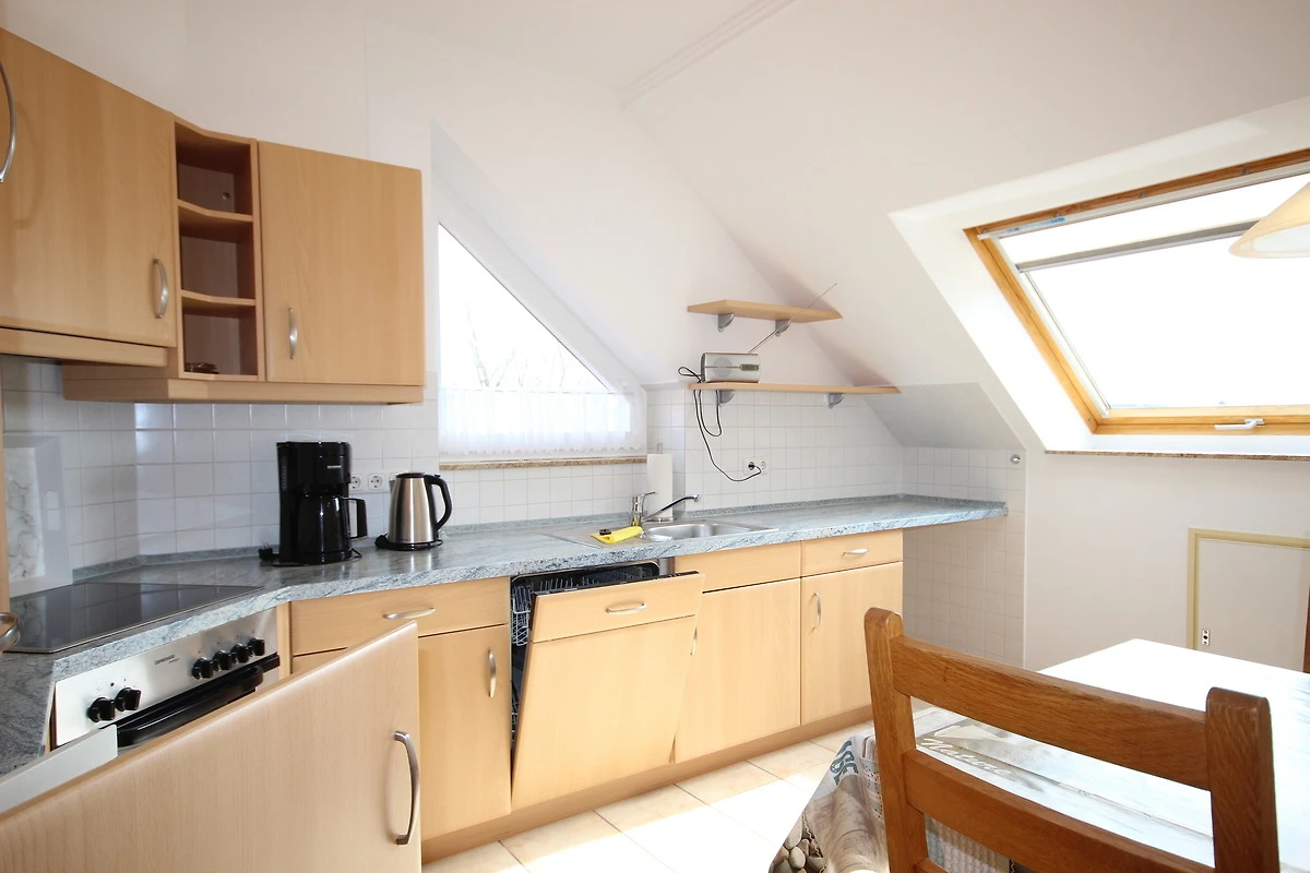 Die Küche ist mit Geschirrspüler, Mikrowelle, Backofen/ Cerankochfeld und Kühlschrank & alle üblichen Küchengeräte sehr gut ausgestattet.