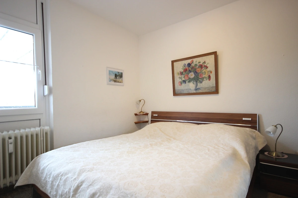 Im komfortabel eingerichteten Wohnzimmer befindet sich ein franz. Wandklappbett für 2 Personen (ca.140 x 200), TV, Radio, Essplatz für 4 Personen, bequeme Couchgarnitur sowie der Zugang zum möblierten, sonnigen Süd-Balkon.