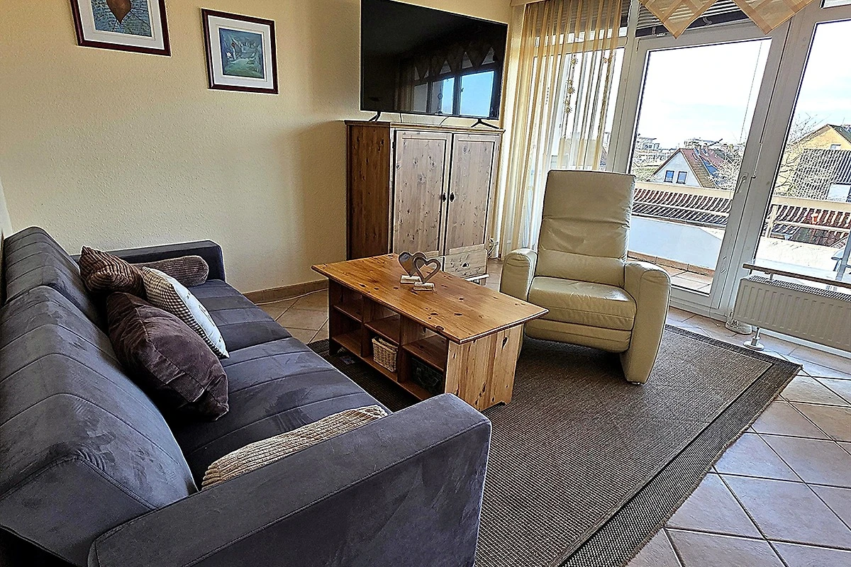 Nur wenige Meter vom Strand entfernt, direkt am Deich, liegt diese schöne 2-Zimmer-Wohnung mit Teilseeblick Richtung Seebrücke, für 2 - 4 Personen.