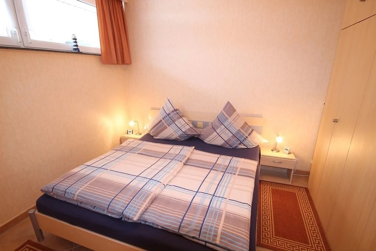 Schlafzimmer: Verfügt über ein komfortables Ehebett und einen Kleiderschrank.