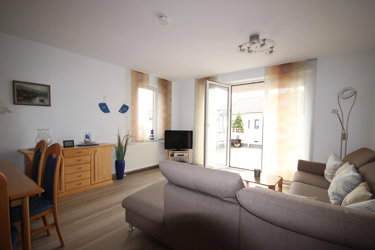Gemütlicher Wohnbereich mit Couchgarnitur, Esstisch, Kabel-TV, Stereoanlage/CD & sonnigem, grossen Südbalkon.