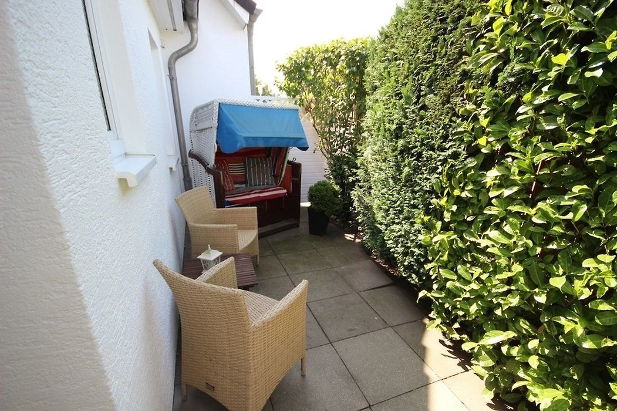 Das Haus ist mit Fliesen ausgelegt. Es handelt sich um ein Nichtraucherhaus. Zwei Terrassen mit Gartenmöbeln stehen zur Verfügung. Ein KFZ-Stellplatz ist auf dem Grundstück.