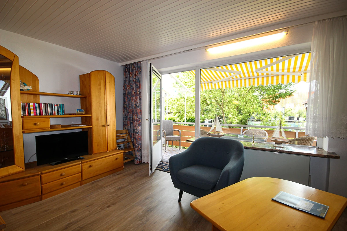 Über 2 Etagen bietet dieses Ferienhaus einen komfortablen Wohnbereich mit Couchgarnitur, Essplatz für 4-5 Personen, TV,WLAN sowie Zugang zum sonnigen, möblierten West-Balkon.