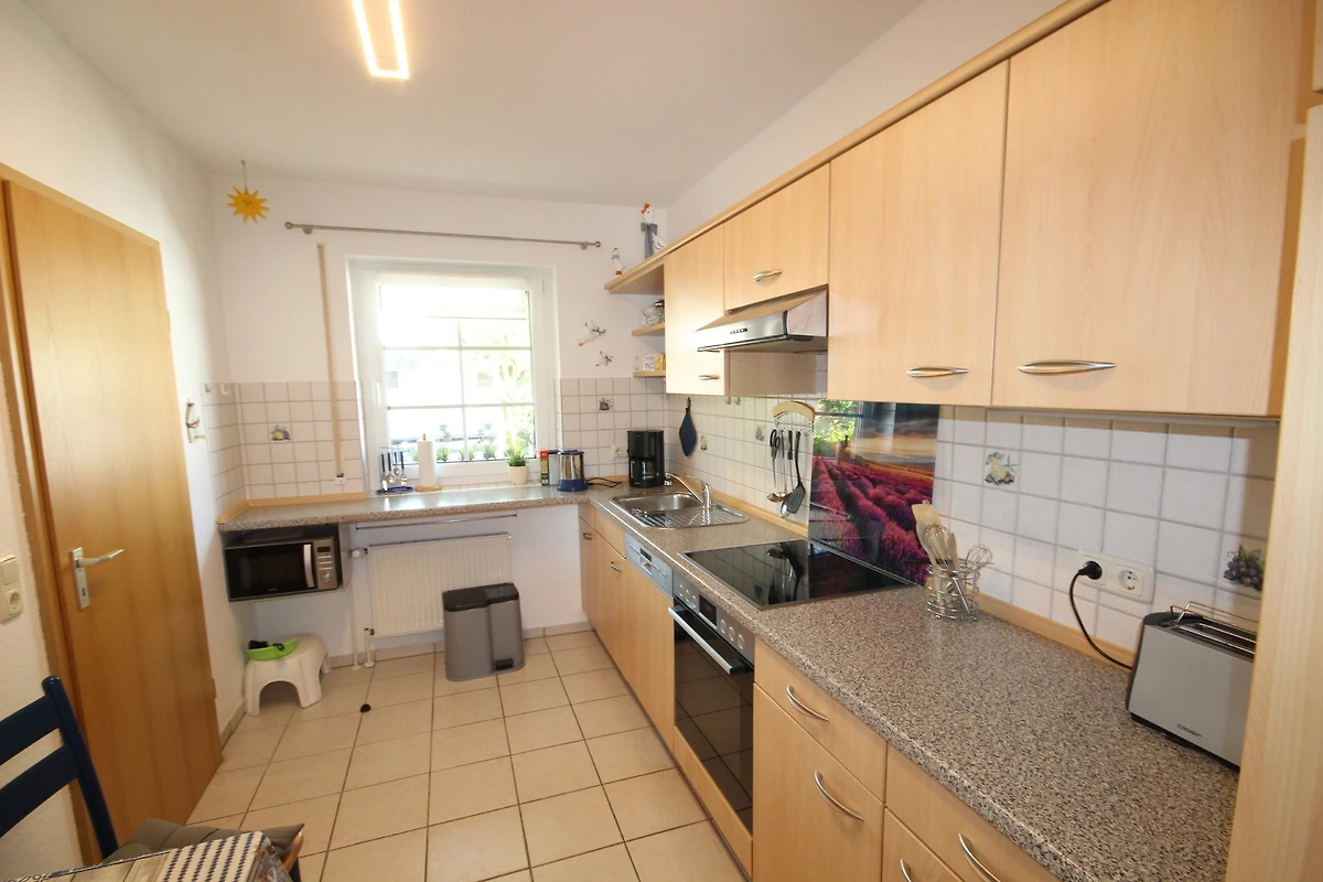 Die separate Küche ist mit E-Herd & Backofen, Abzugshaube, Geschirrspüler und den üblichen Küchengeräten sehr gut ausgestattet.