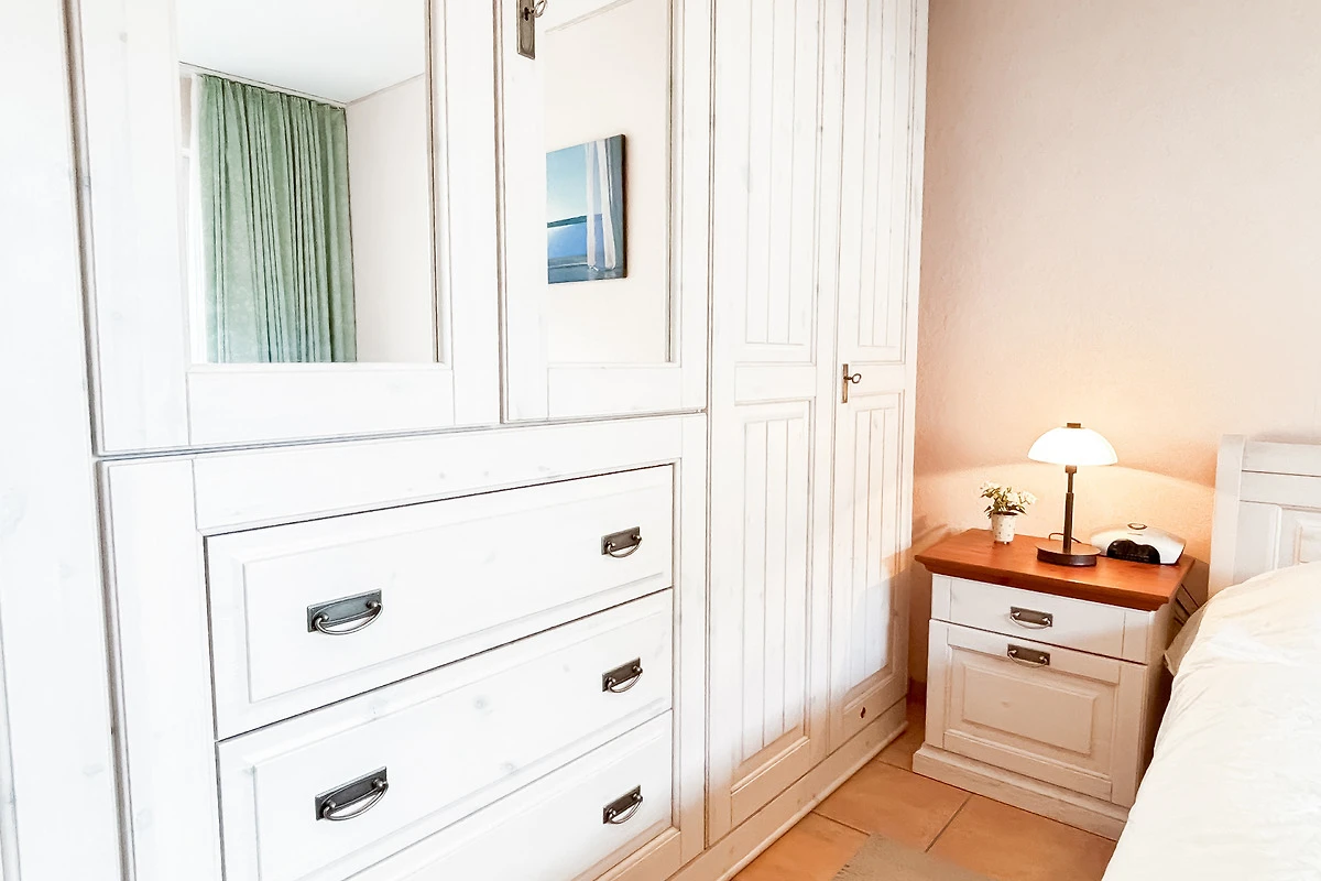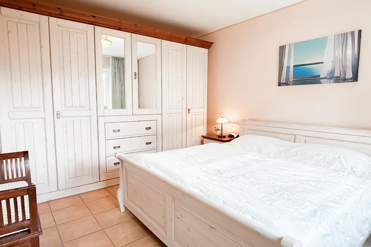 Das gemütliche Schlafzimmer ist möbliert mit einem komfortablen Doppelbett, Kleiderschrank. Rollläden zum Verdunkeln sind hier vorhanden.