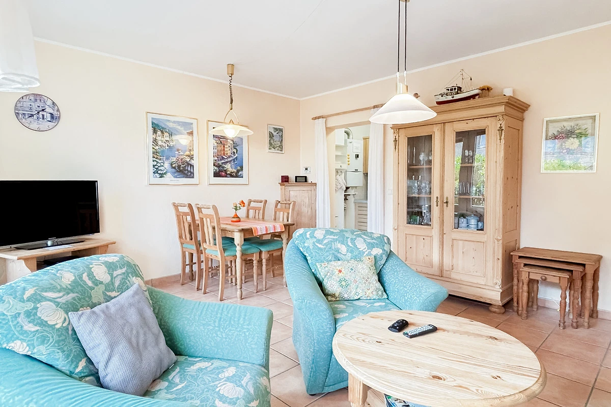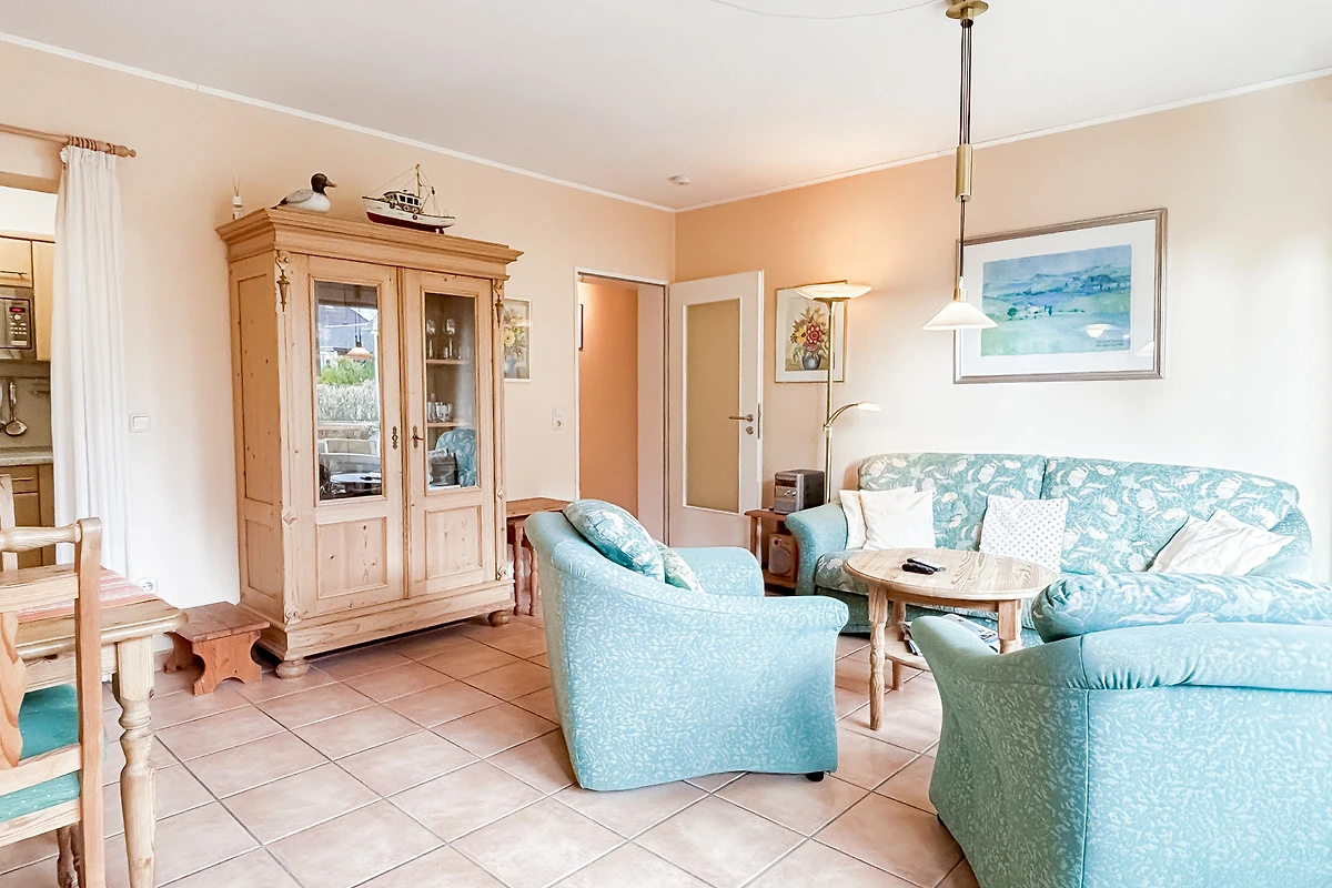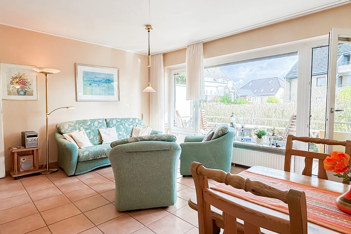 Diese geschmackvoll eingerichtete 2-Zimmer-Ferienwohnung für bis zu 2 Personen + Kleinkind, liegt im Hochpaterre einer kleinen Wohnanlage. Ca. 2 Minuten Fussweg zum Strand, Einkaufsmöglichkeiten für den täglichen Bedarf erreichen Sie nach 2 - 3 Gehminuten.