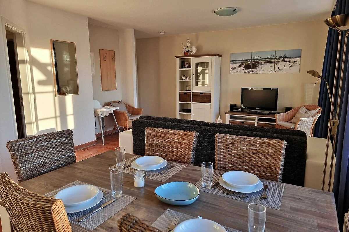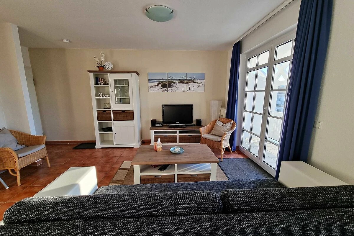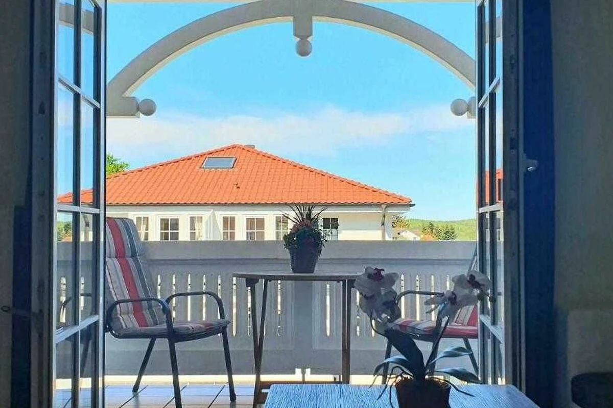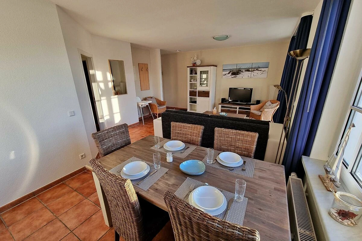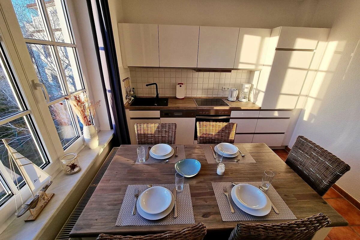 Die Villa Sanddorn ist im Ostseebad Binz, direkt am Waldrand der Granitz gelegen. Ruhig aber dennoch nur wenige Gehminuten bis zum Ortskern und zum feinsandigen Strand der Ostsee, zum Schmachter See und in den belebten Ortskern. Die Ferienwohnung 27 in der Villa Sanddorn ist ca. 48m² und für 4 Personen bestens geeignet. Vom Balkon hat man einen herrlichen Panoramablick über Binz. Das Wohnzimmer ist mit einer gemütlichen Schlafcouch, Sesseln und einem Flachbild TV, W-LAN, Radio, CD-Player, Kinderhochstuhl, eingerichtet. In der neuen, offenen Küche mit Essbereich ist alles für Ihren Urlaub vorhanden. Ein 4-Platten Cerankochfeld mit Backofen, Kühlschrank mit Gefrierfach, Spülmaschine, Filterkaffeemaschine, Toaster, Wasserkocher und reichlich Küchenutensilien sind selbstverständlich auch vorhanden. Die Wohnung bietet ein Schlafzimmer mit Doppelbett und Kleiderschrank. Im Schlafzimmer könnten Sie ein vorhandenes, kostenloses Kinderreisebett aufstellen. Das angrenzende Duschbad ist mit WC und Waschbecken ausgestattet. Auf dem Balkon kann man frühstücken oder abends den Sonnenuntergang geniessen. Desweiteren steht ein kostenloser Tiegaragenstellplatz mit einer Parkhöhe von 1,50m und kostenloses W-LAN zur Verfügung.