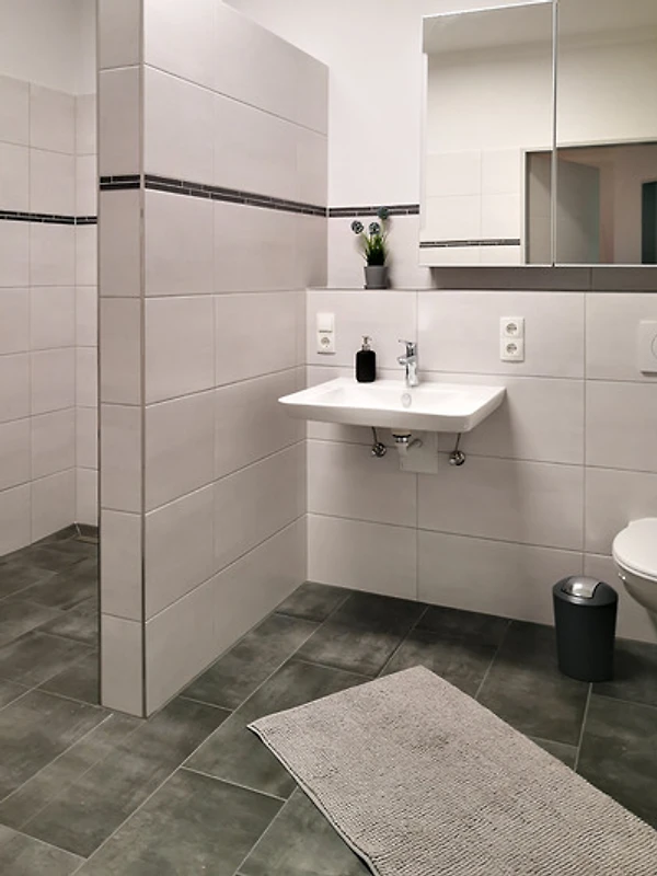 Die Wohnung ist rollstuhlgerecht und barrierefrei ausgebaut. Ein Waschtrockner steht im Eingangsbereich zur alleinigen Verfügung. Hunde sind auf Anfrage willkommen.