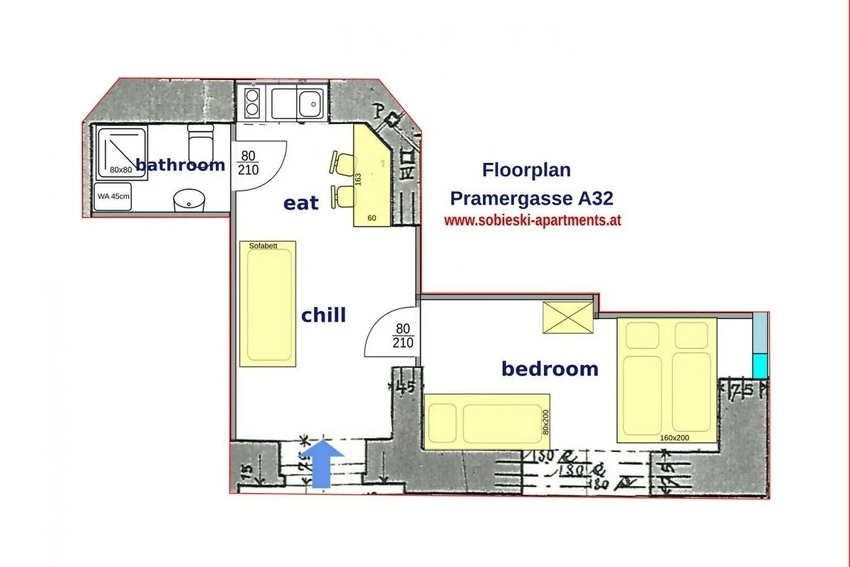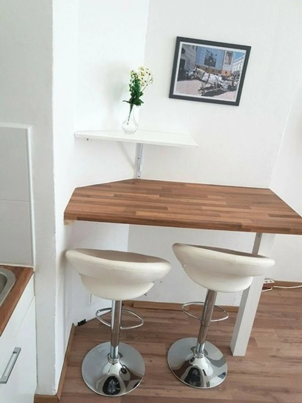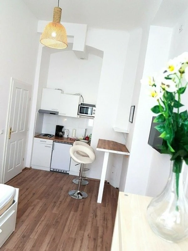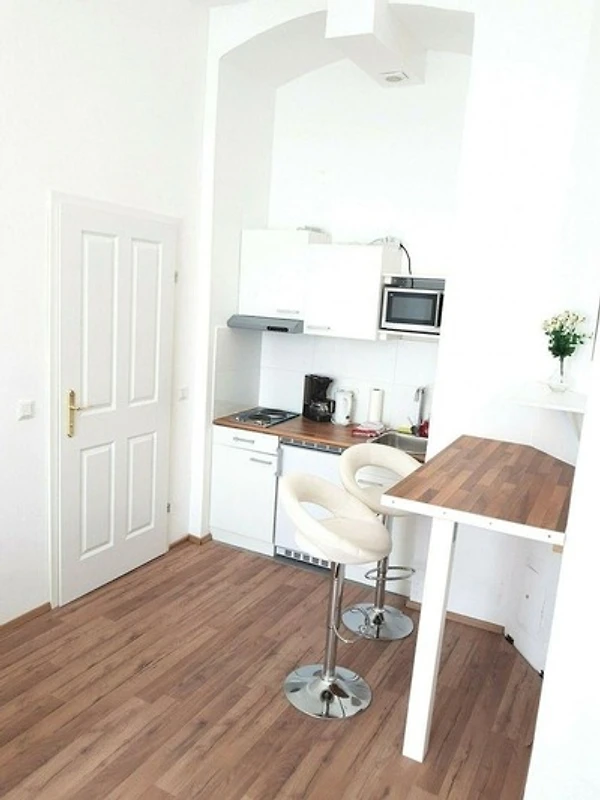 1 Schlafzimmer + 1 Wohnzimmer + 1 Badezimmer bieten angenehme Unterkunft für Paare und Familien. Eine zusätzliche Schlafmöglichkeit ist bei Bedarf im Wohnzimmer auf einer soliden Schlafcouch gegeben. Alle Zimmer sind lichtdurchflutet und mit Fenstern ausgestattet. Die hohe Raumhöhe bietet ein gutes Raumklima und viel Luft. Im Wohnzimmer befindet sich ein elegante Frühstückstheke.