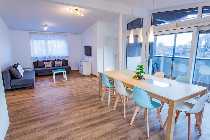 Alle Einrichtungen des Stadtzentrums liegen in unmittelbarer Nähe zum Apartment. Der Hauptplatz im Ortskern von Schladming liegt nur etwa 5 Gehminuten entfernt. Direkt vor der Haustür befindet sich ein Supermarkt sowie ein Modegeschäft. Zahlreiche Restaurants, Bars, das Erlebnisbad Schladming und der congress-Schladming sind ebenfalls fussläufig erreichbar.