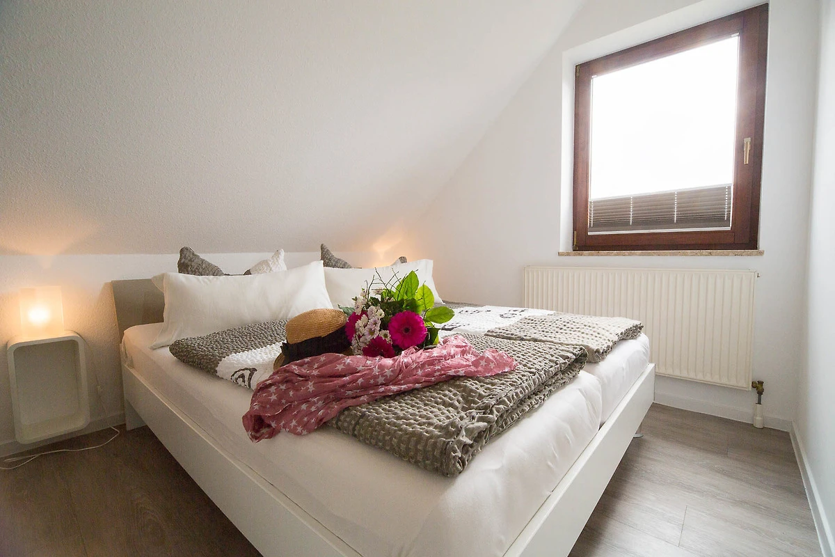 Das separate Schlafzimmer ist mit Doppelbett (160 x 200cm) eingerichtet.