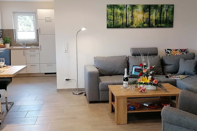 1 Wohn- / Essbereich mit Schlafcouch (für 1 - 2 Personen), grossen Flachbildschirm
