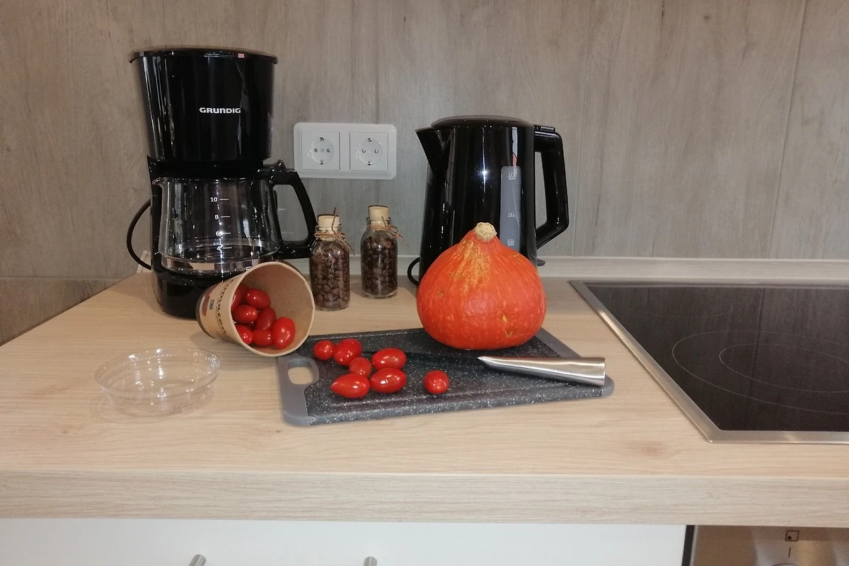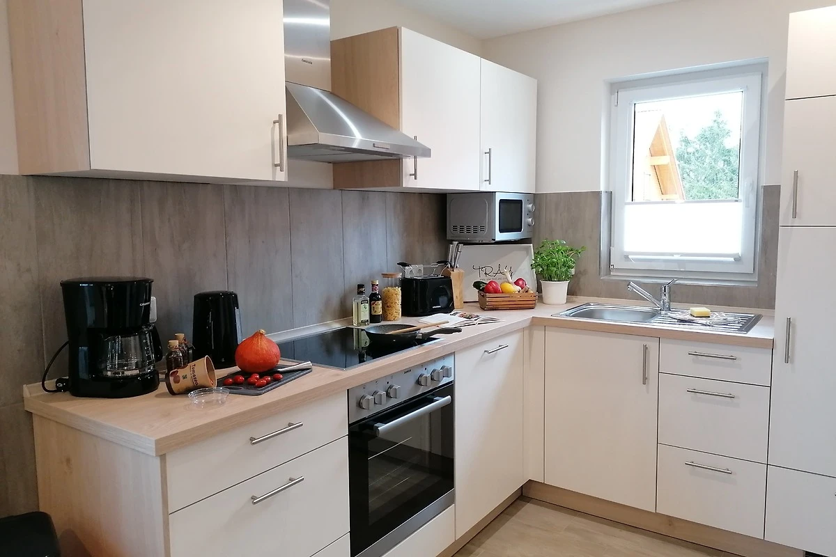 1 moderne vollausgestattete Küche mit Geschirrspüler, Mikrowelle, E-Herd (Ceran) mit Backofen, Kühl-/ Gefrierkombination, Toaster, Kaffeemaschine, Mikrowelle u.v.m.