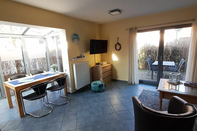 Vom Ferienhaus ist alles problemlos fussläufig erreichbar. Strand, Supermarkt, Bäcker, Restaurants und Fahrradverleih sind nur wenige Gehminuten entfernt. Auch zum Busbahnhof, zum Hafen am Salzhaff und zu Ärzten sowie zur Apotheke ist es nicht weit.