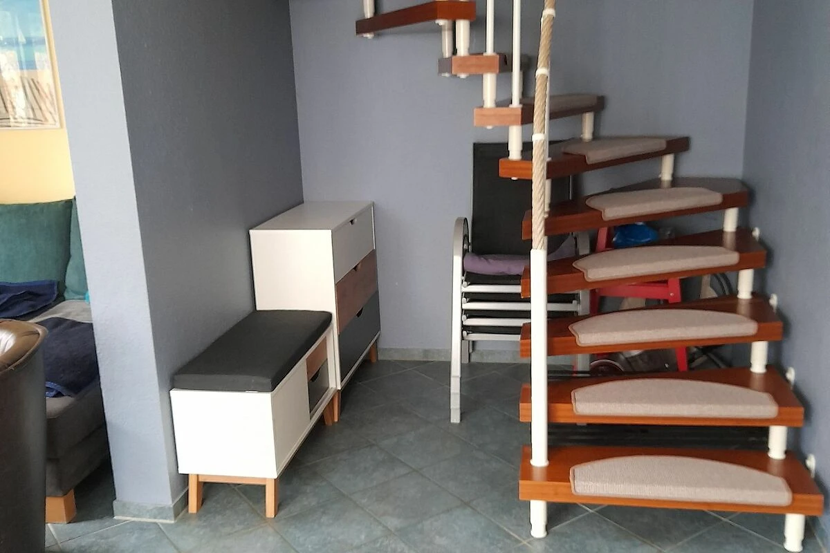 Im Ferienhaus Mari befinden sich zwei separate Schlafzimmer mit einem Doppelbett (180x200 cm) und mit 2 Einzelbetten, wobei eins ausziehbar ist. Das Haus bietet ausreichend Platz für 5 Personen mit Kleindkind.
