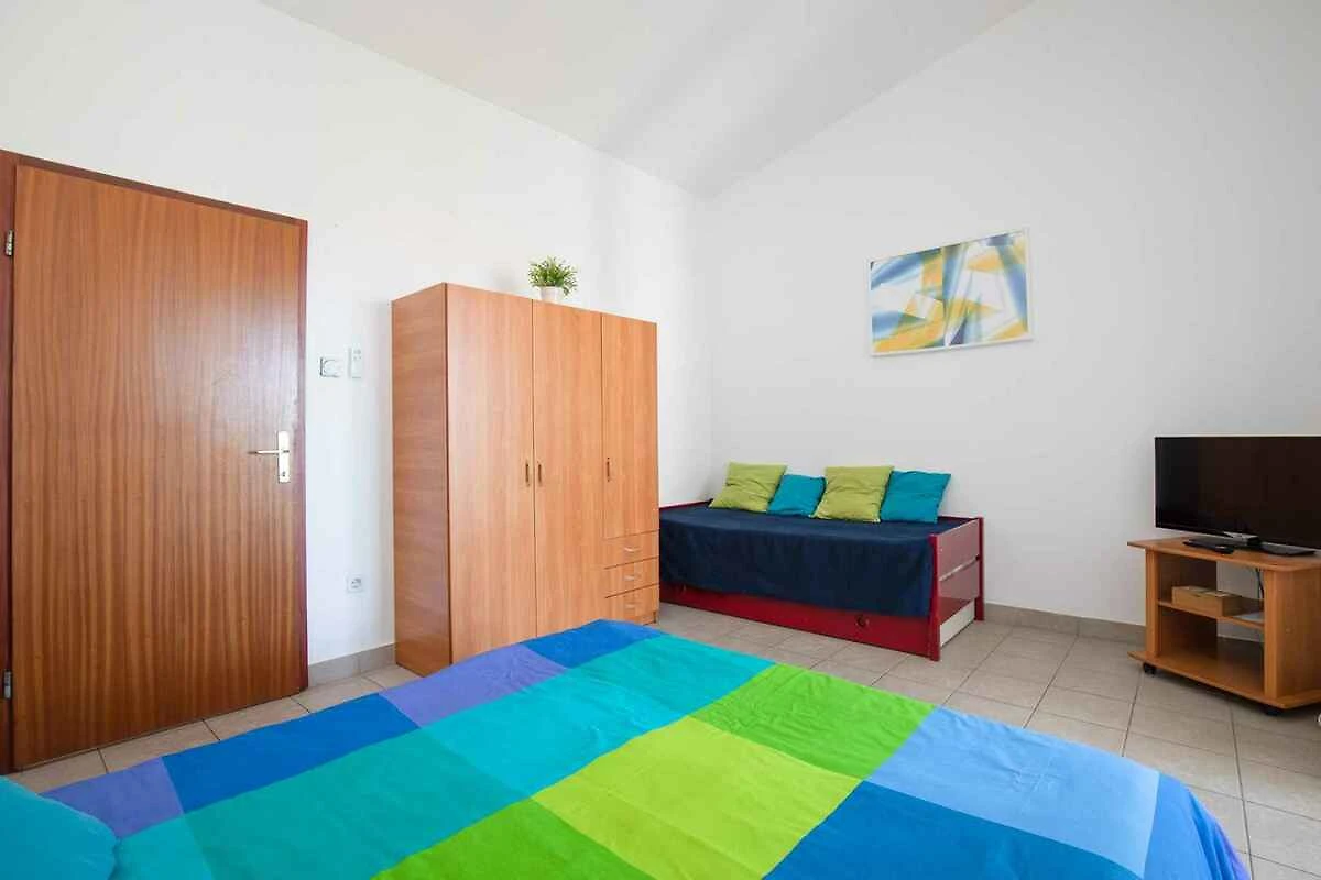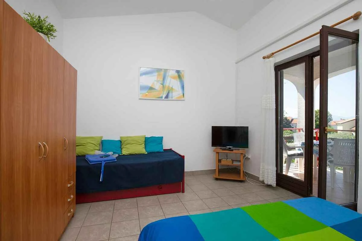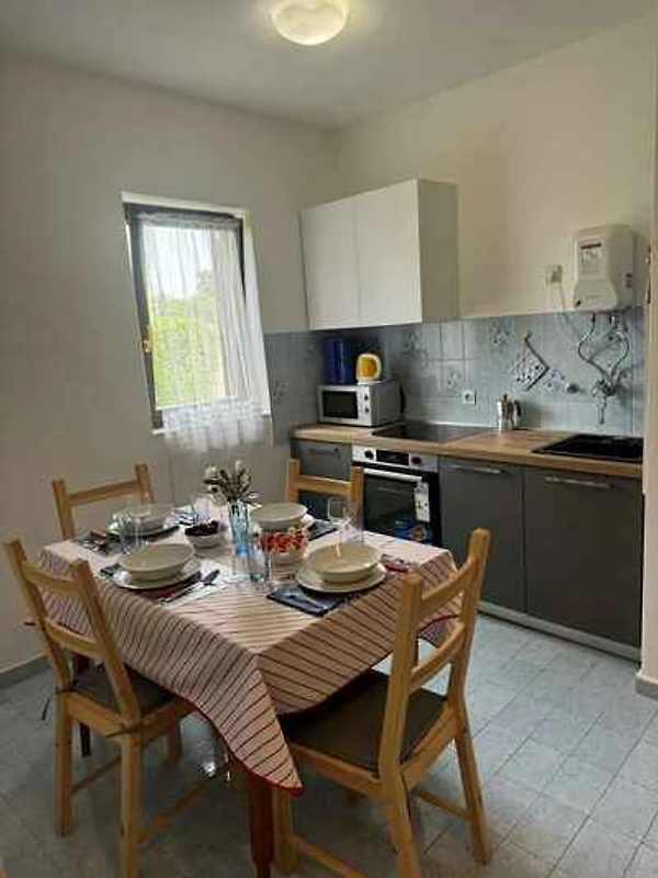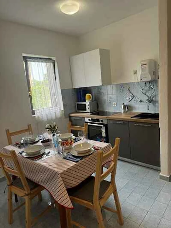 Vantačići, Ortsteil Malinska. Die Ferienwohnung befindet sich auf einem geschlossenen Gartengrundstück, von einem Zaun begrenzt. Im selben Haus befinden sich auch: KRK MLI 119 (4 Personen) und KRK MLI 121 (4 Personen). Parkplatz (für 1 Pkw) auf dem Grundstück.
