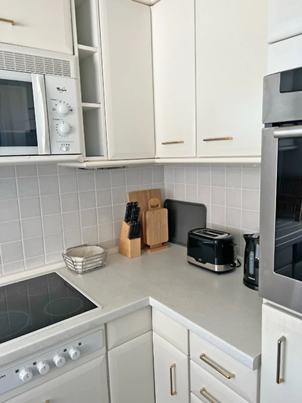 Vom Flur aus erreichen Sie alle weiteren Räume. Das Bad ist mit Dusche, WC, Waschtisch, einem Spiegel, sowie einem beheizbaren Handtuchhalter ausgestattet. Das separate Schlafzimmer ist mit einem Doppelbett (90x200cm), zwei Nachttischen, einem grossen Schrank und Verdunkelungsmöglichkeiten eingerichtet. Die Küche ist komplett ausgestattet und bietet Ihnen alle notwendigen Küchenutensilien.